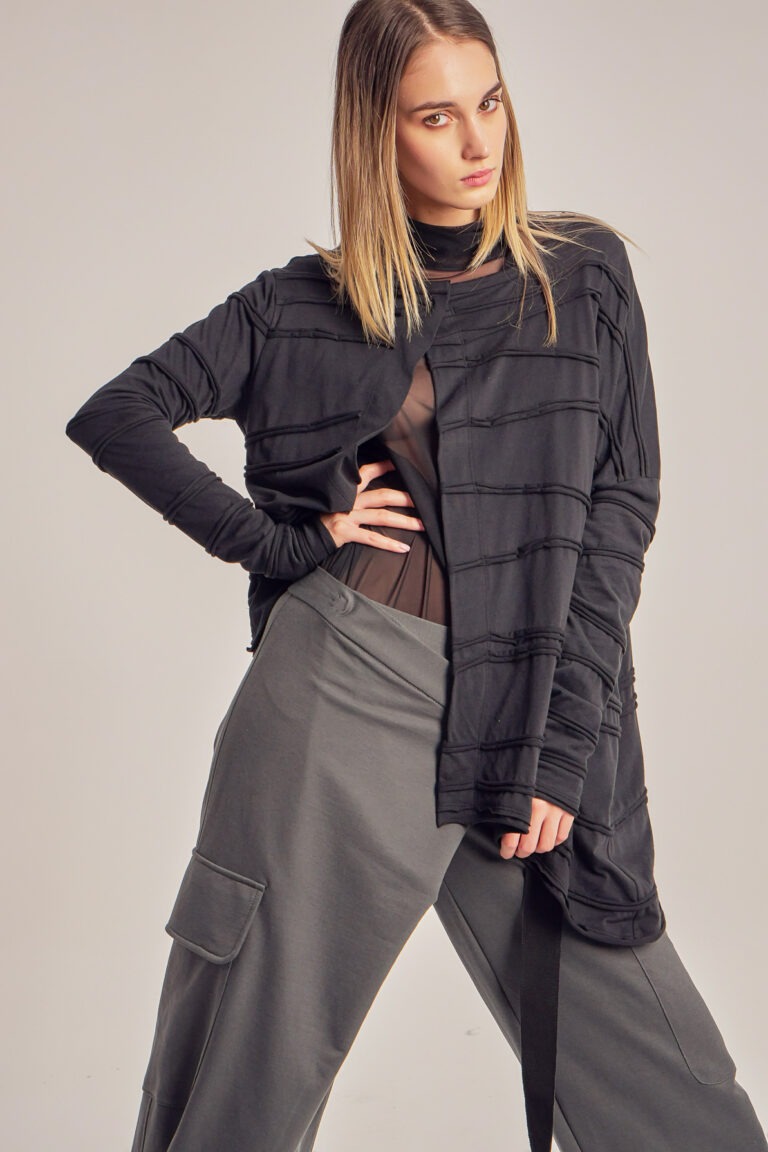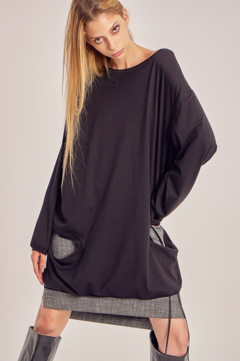 Tank top with asymmetric cutouts, with sequins, tulle and cotton jersey.
