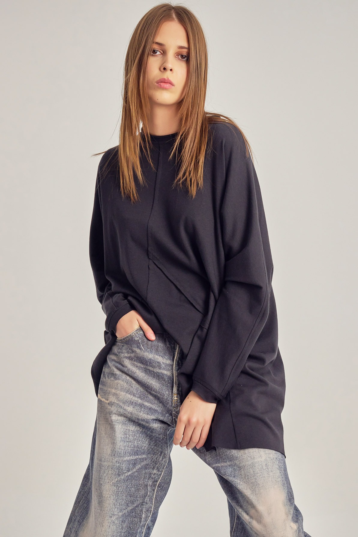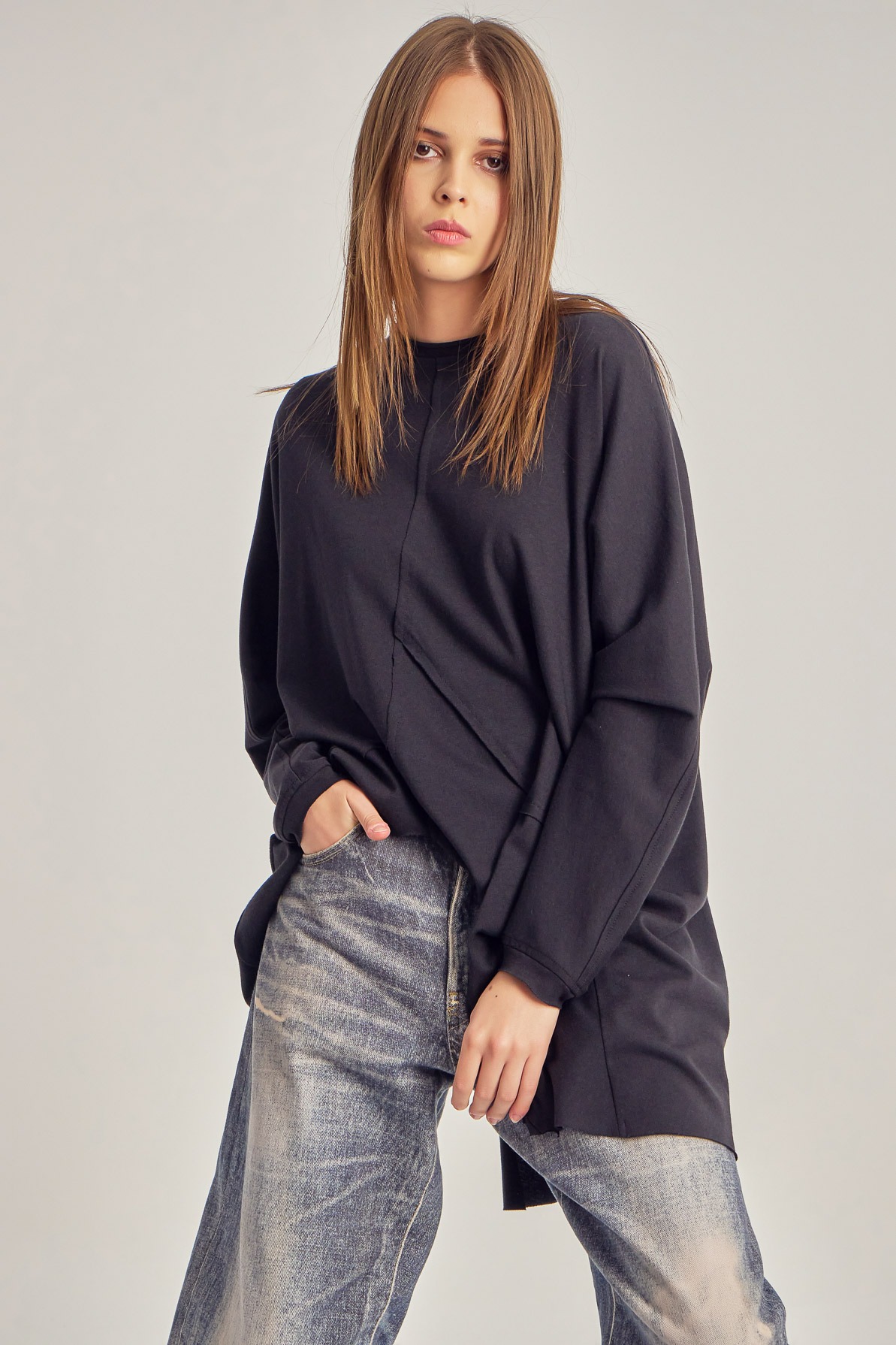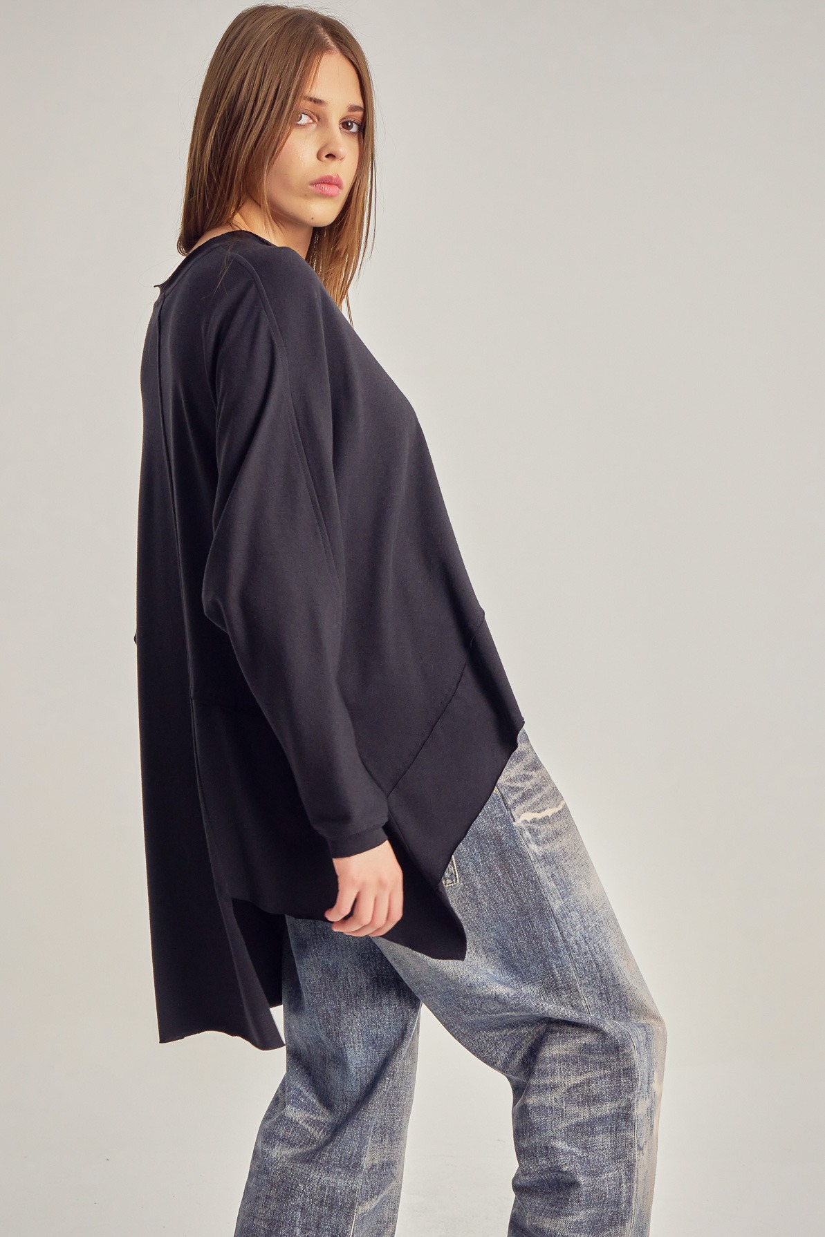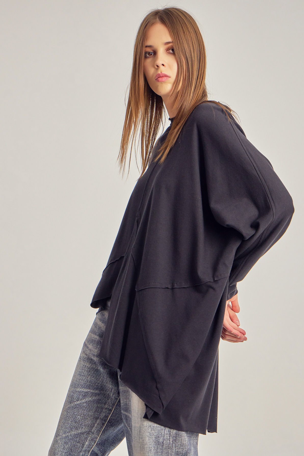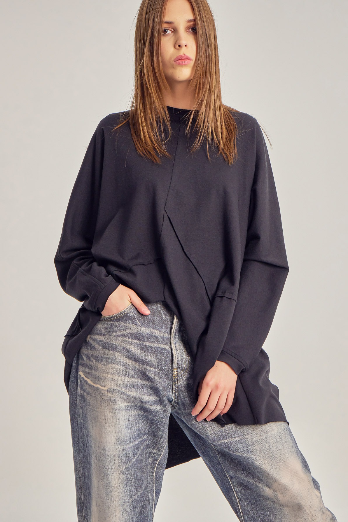 Oversized cotton jersey blouse with asymmetric details.