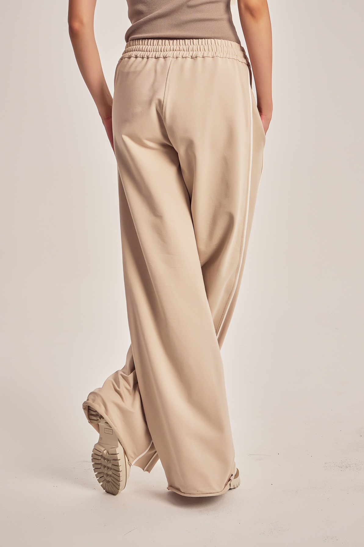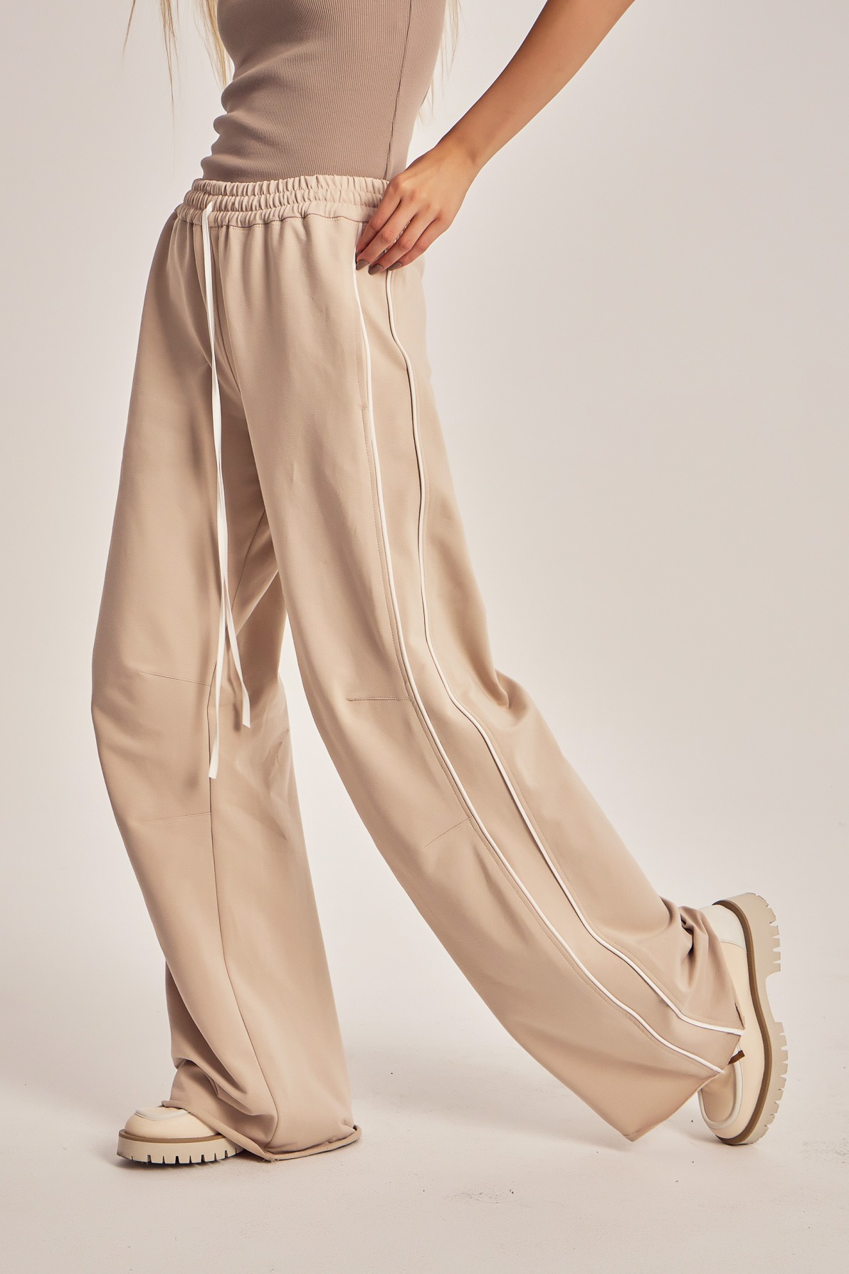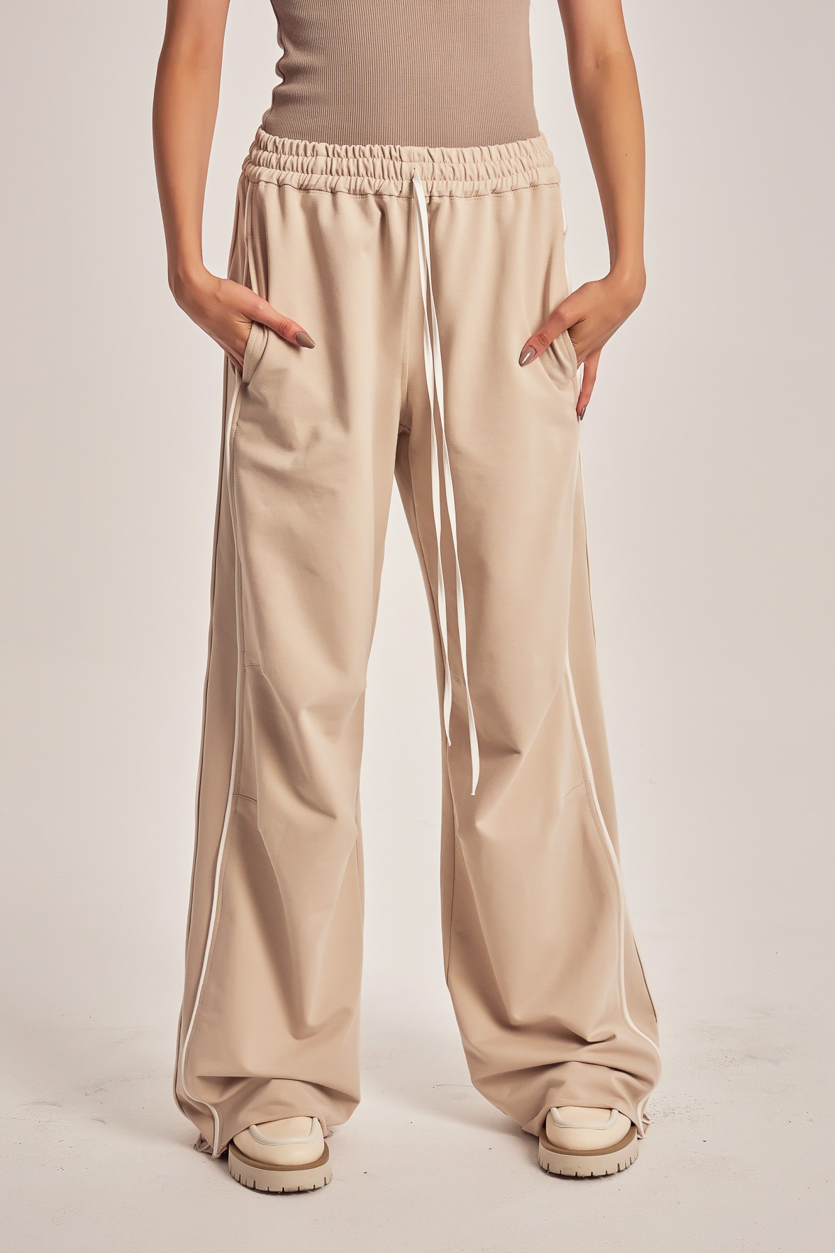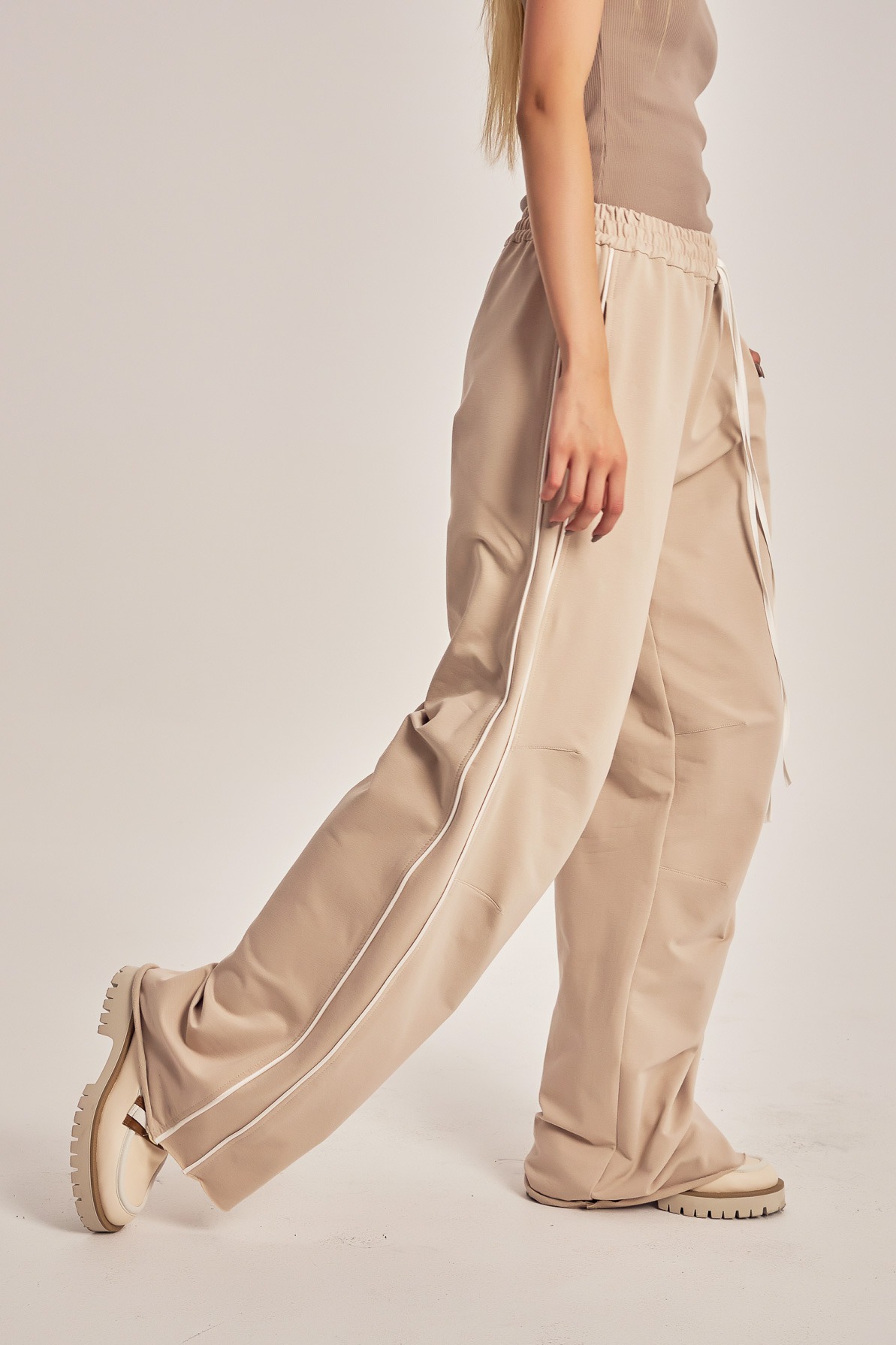 Training pants with contrast satin string and side insertions.