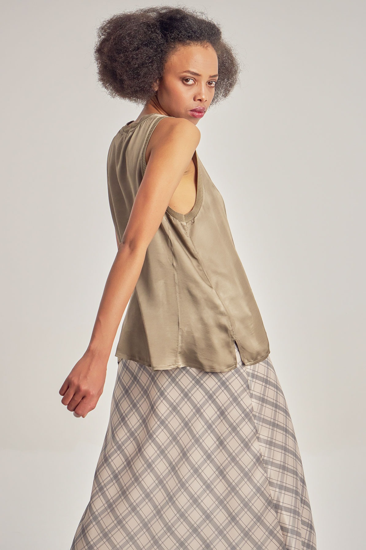 Loose, satin viscose tank top.