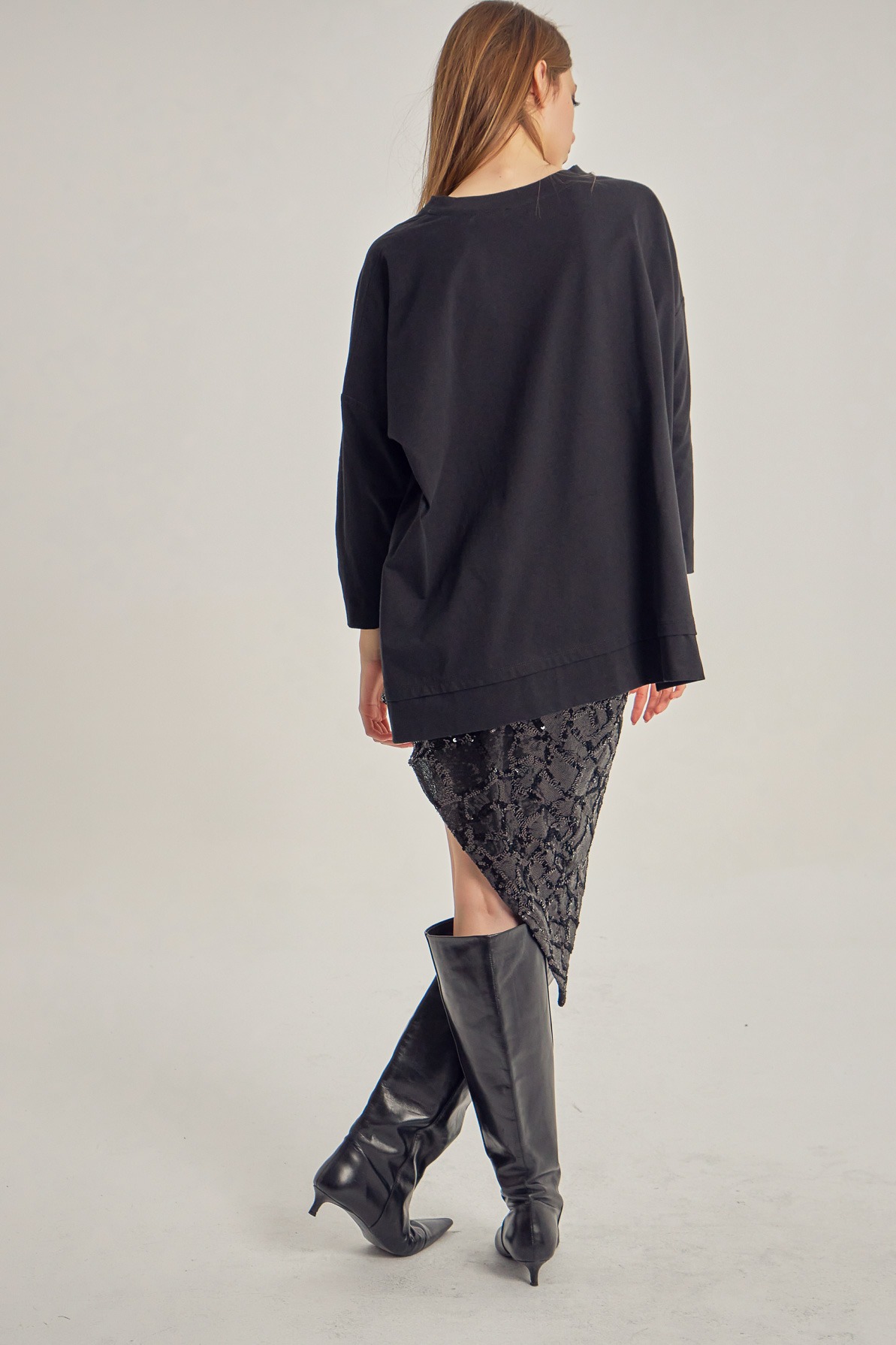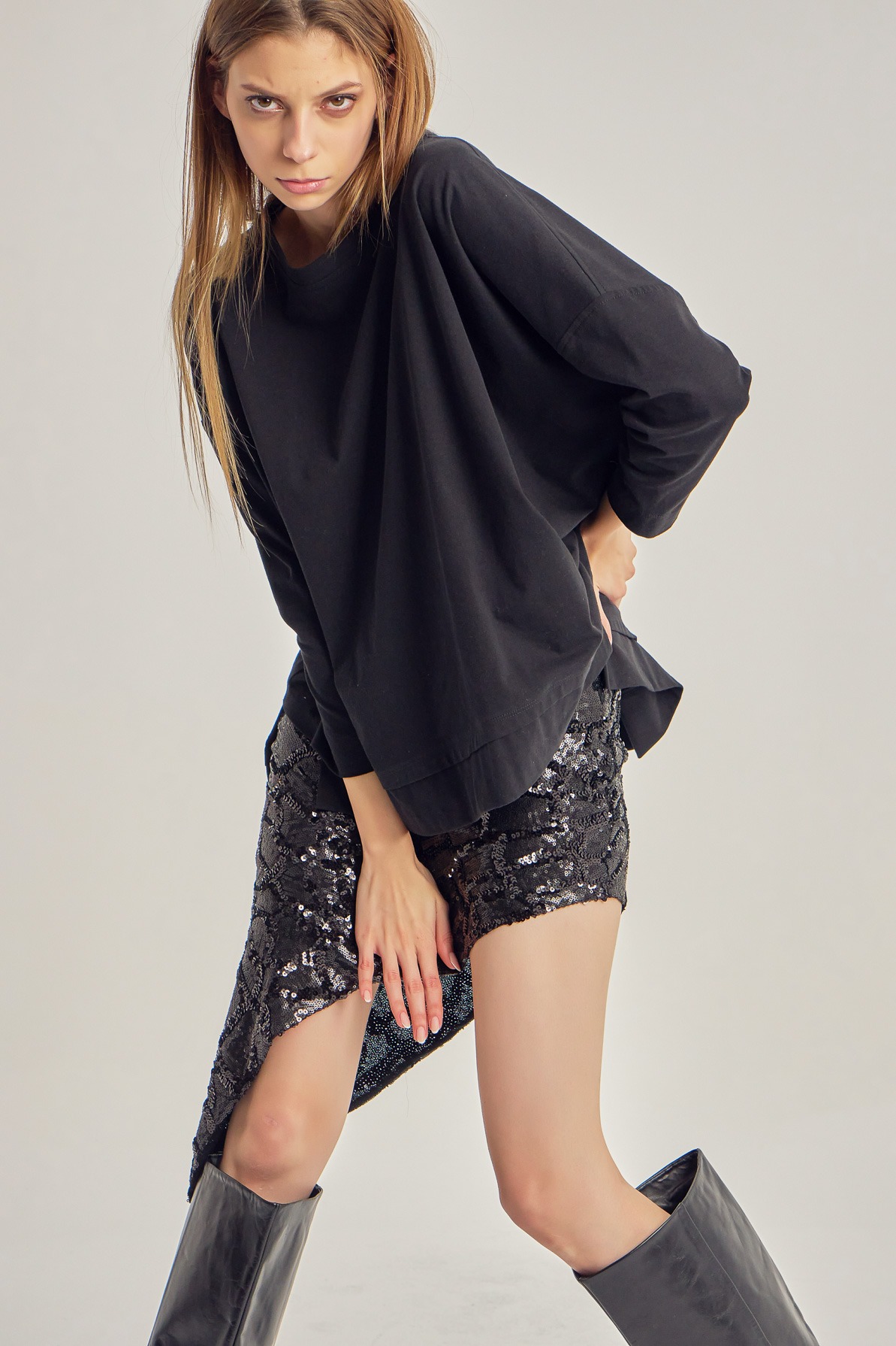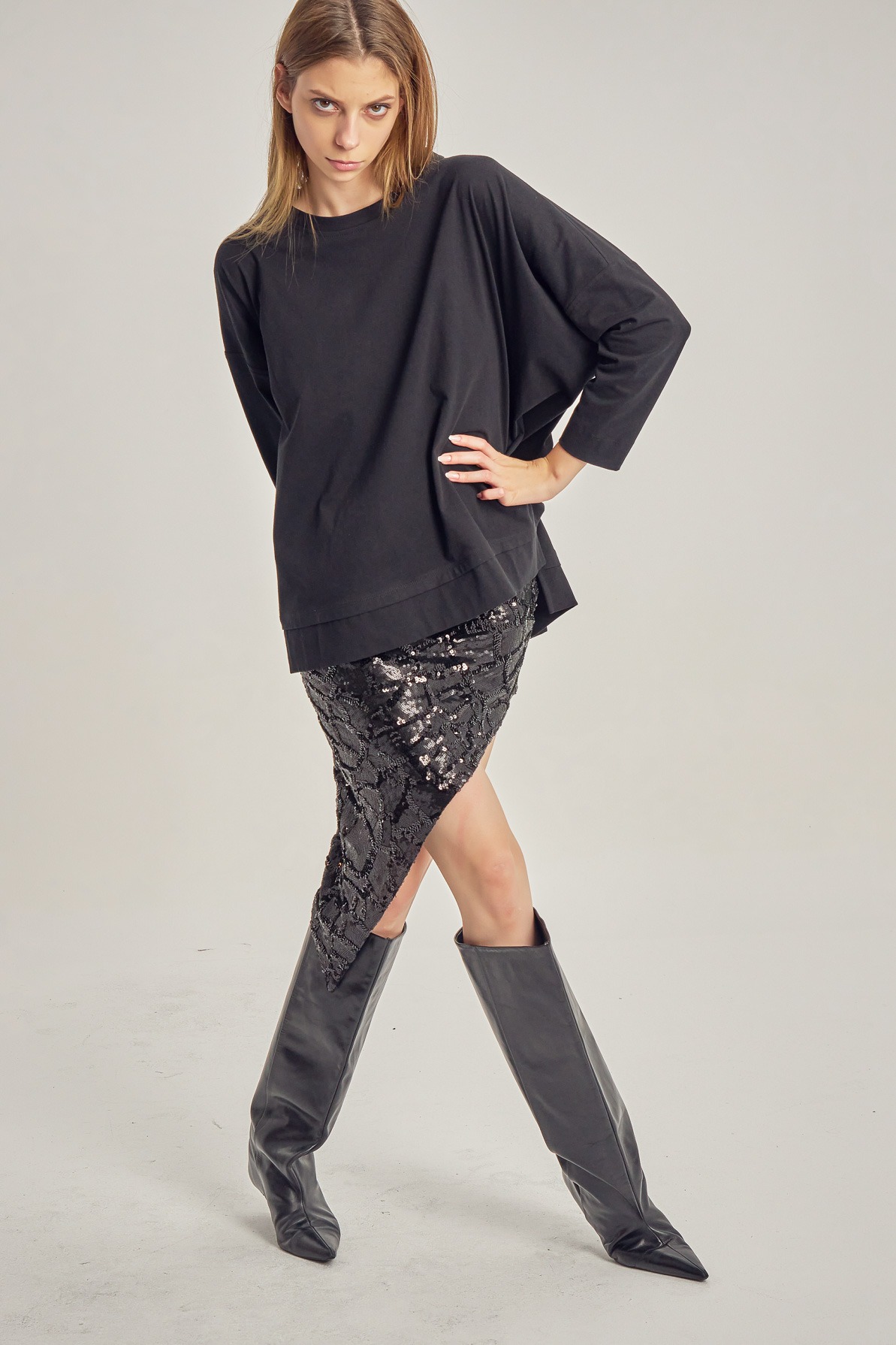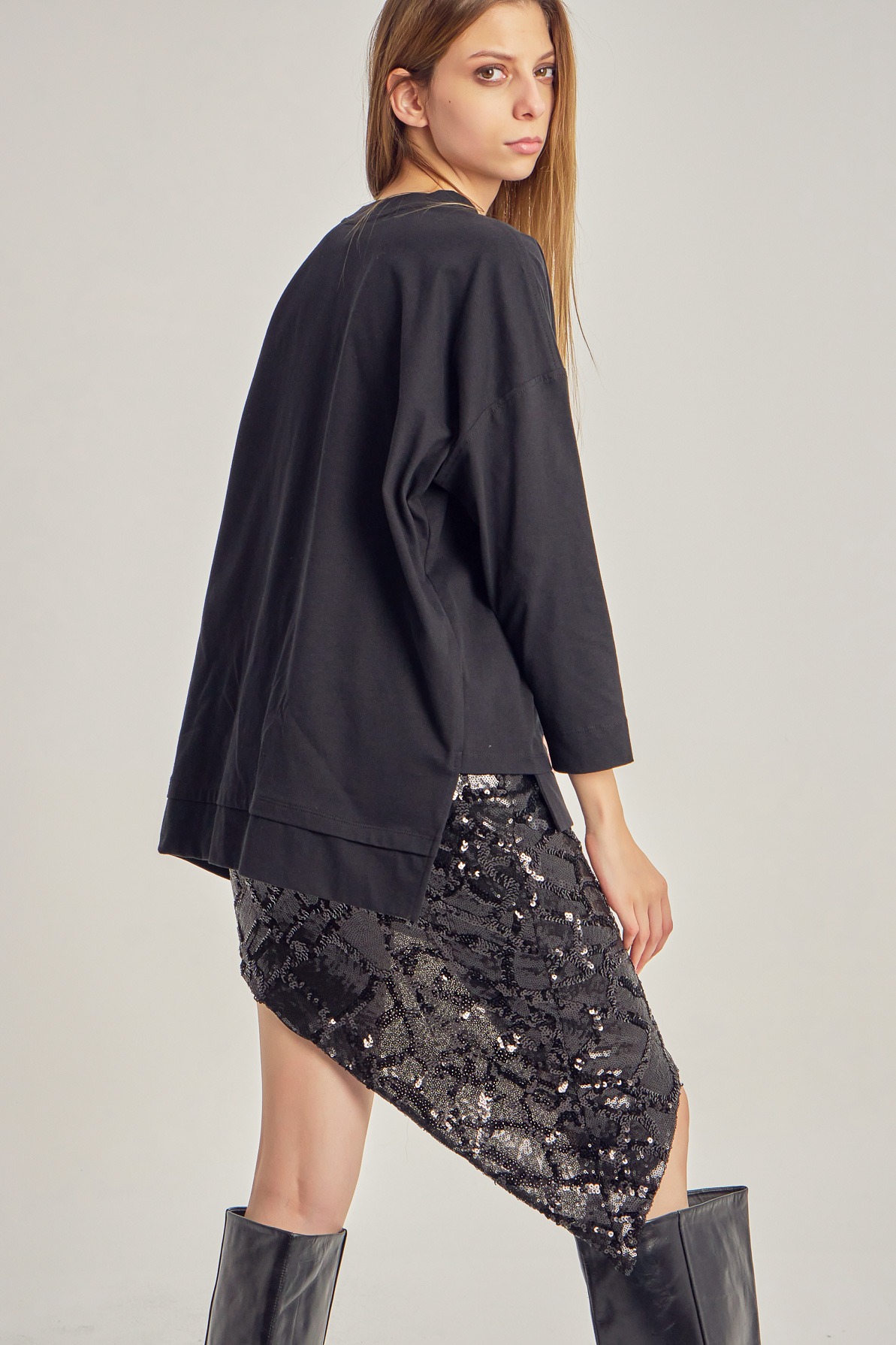 Made from soft cotton jersey, this top features a loose, comfortable fit that drapes naturally on the body. The wide sleeves and fluid silhouette create a modern, effortless look.