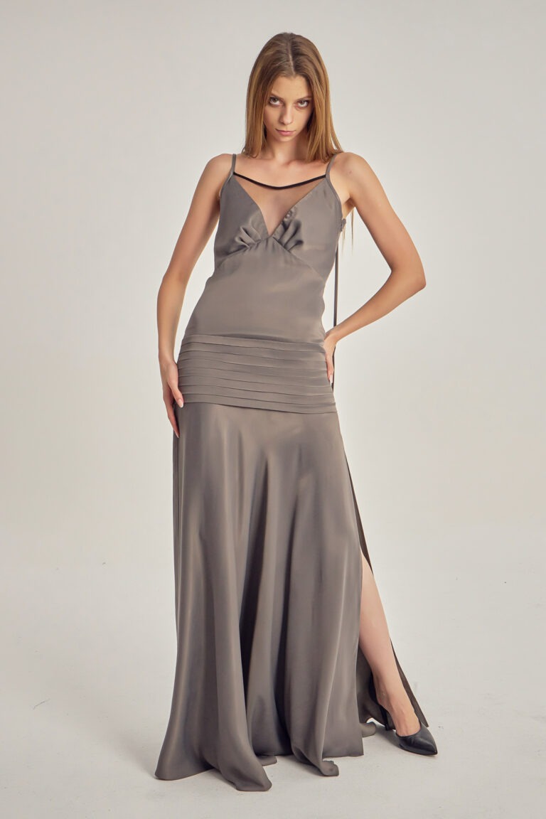 Oversized viscose dress, with ruffles.