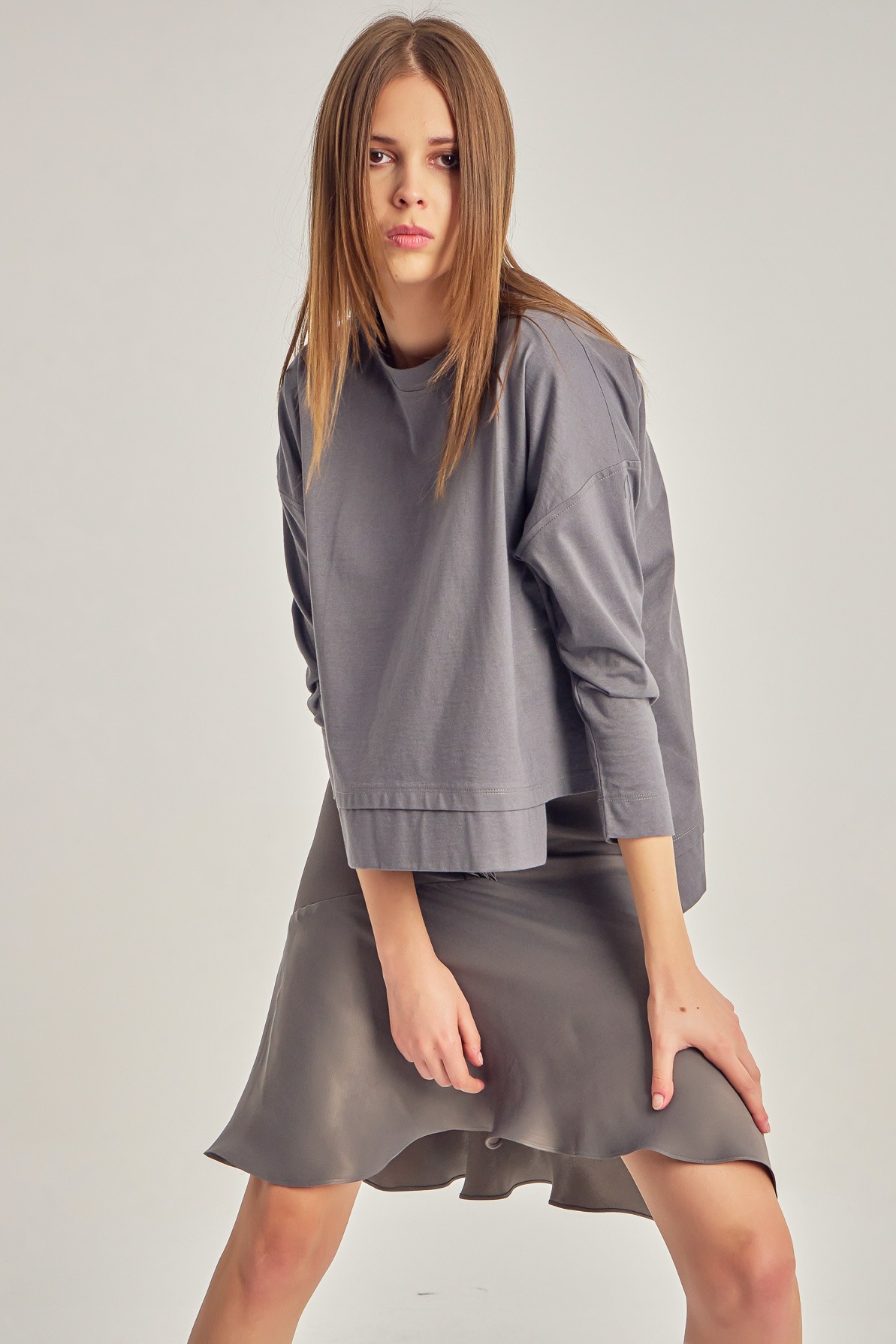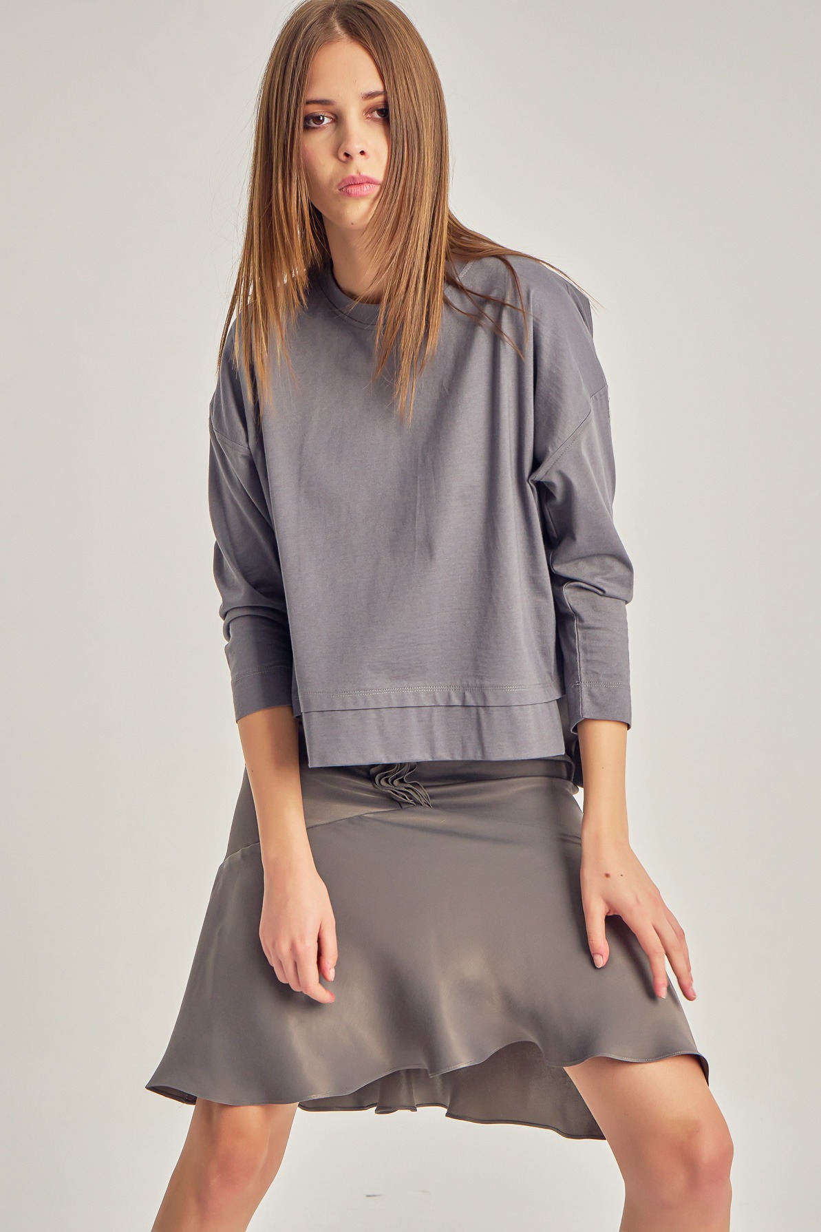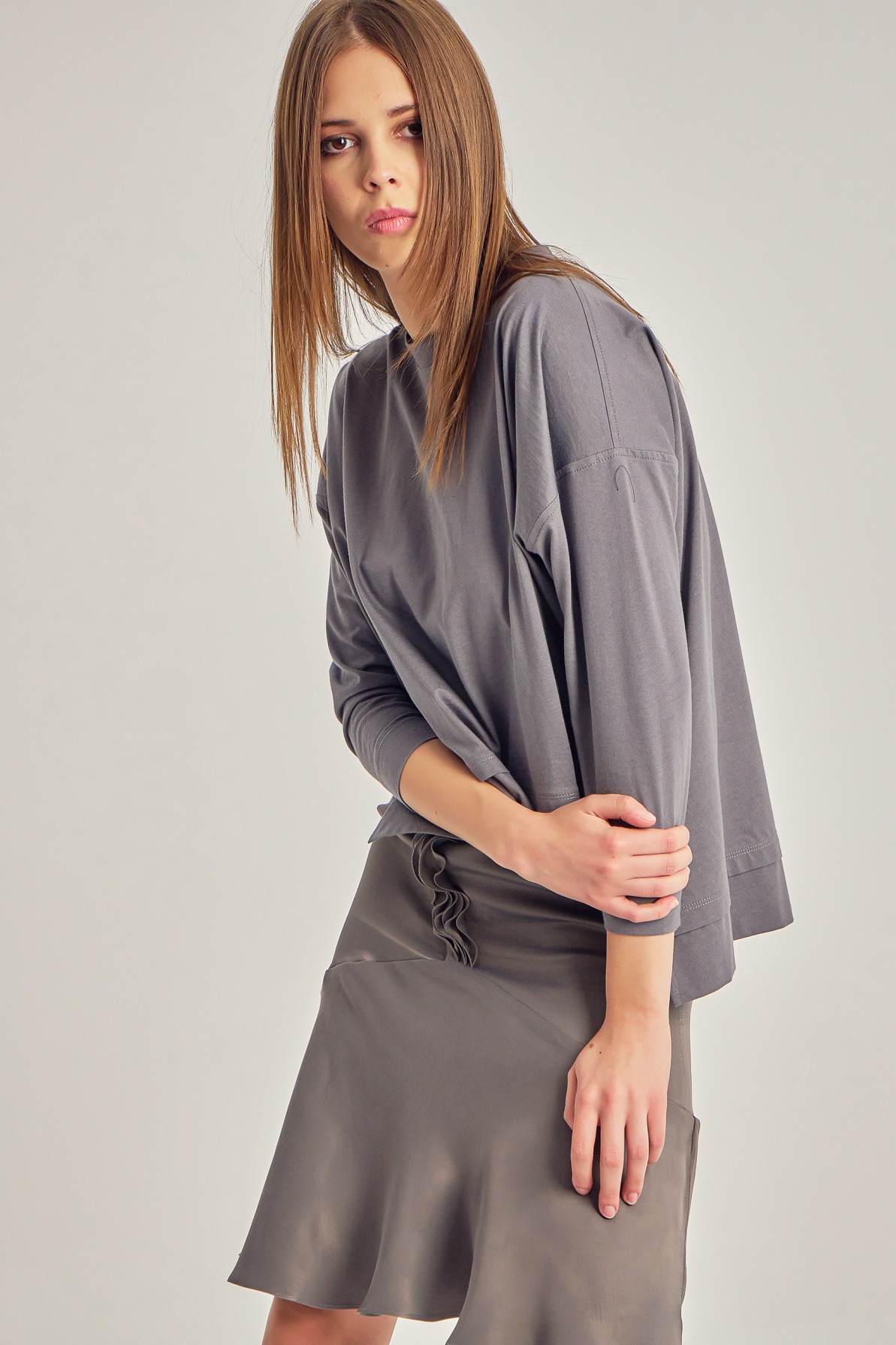 Made from soft, lightweight jersey, this top features a straight, relaxed silhouette that drapes naturally on the body. The long sleeves and classic round neckline give it a clean, minimalist look.