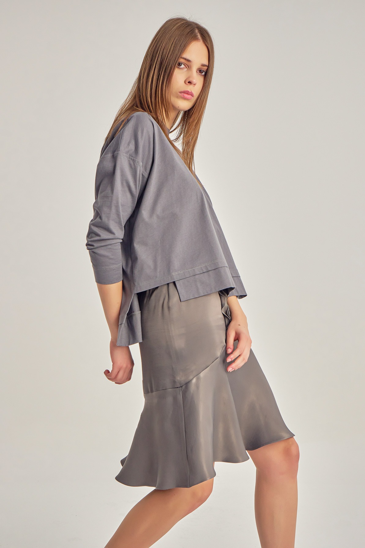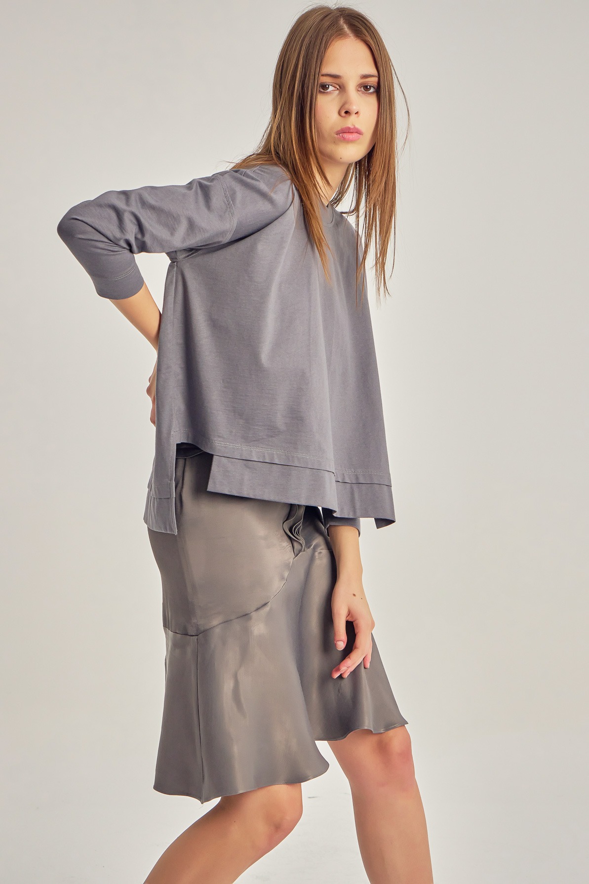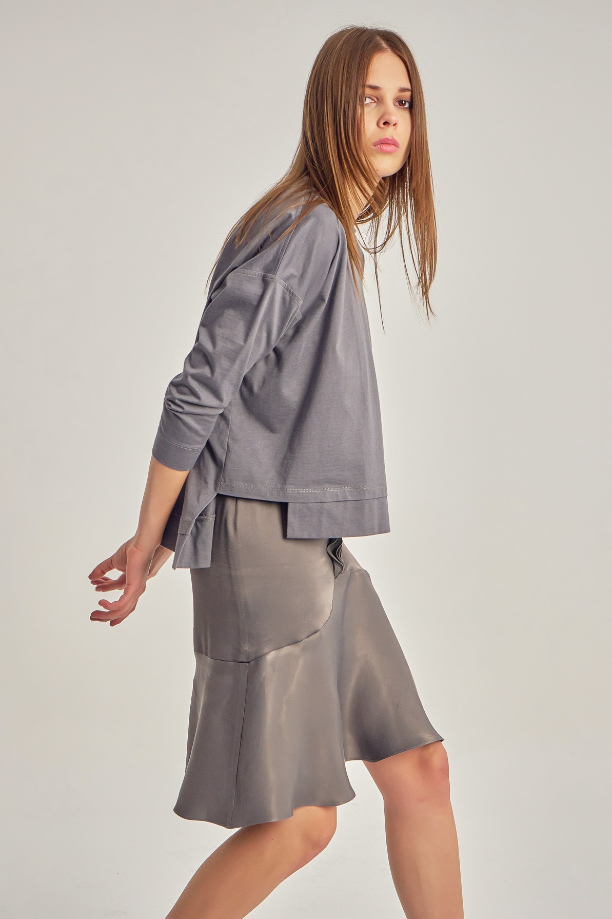 Made from soft, lightweight jersey, this top features a straight, relaxed silhouette that drapes naturally on the body. The long sleeves and classic round neckline give it a clean, minimalist look.