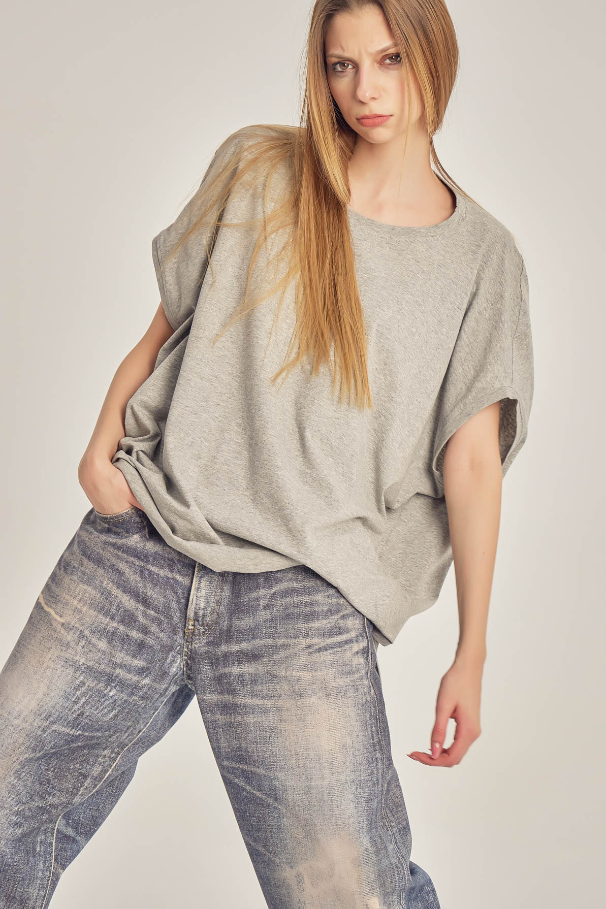 Soft jersey T-shirt with a relaxed fit and dropped shoulders, designed for everyday comfort and effortless versatility. The fluid texture and minimalist cut make it an essential piece, easy to style for both casual looks and more refined combinations.
