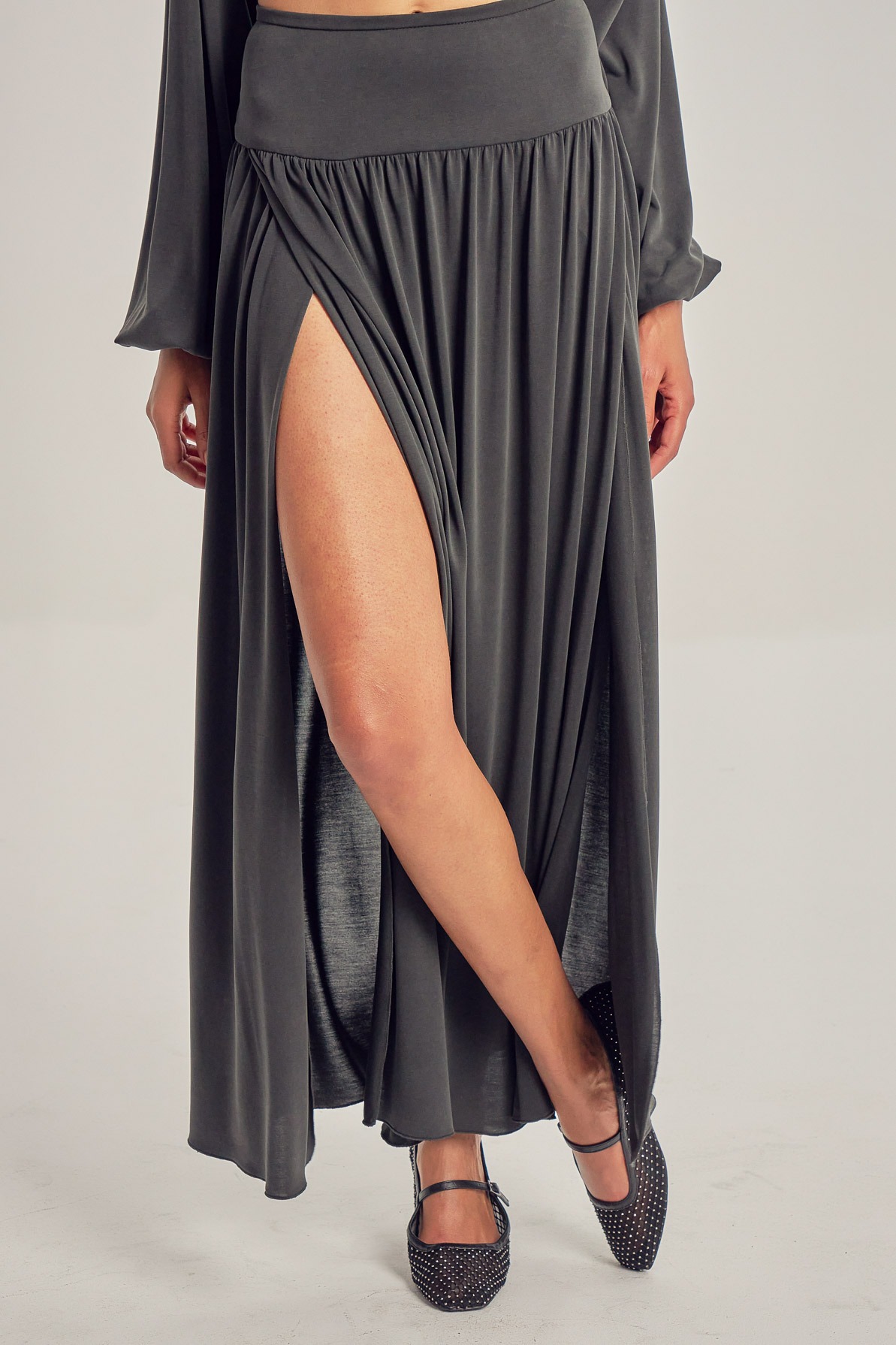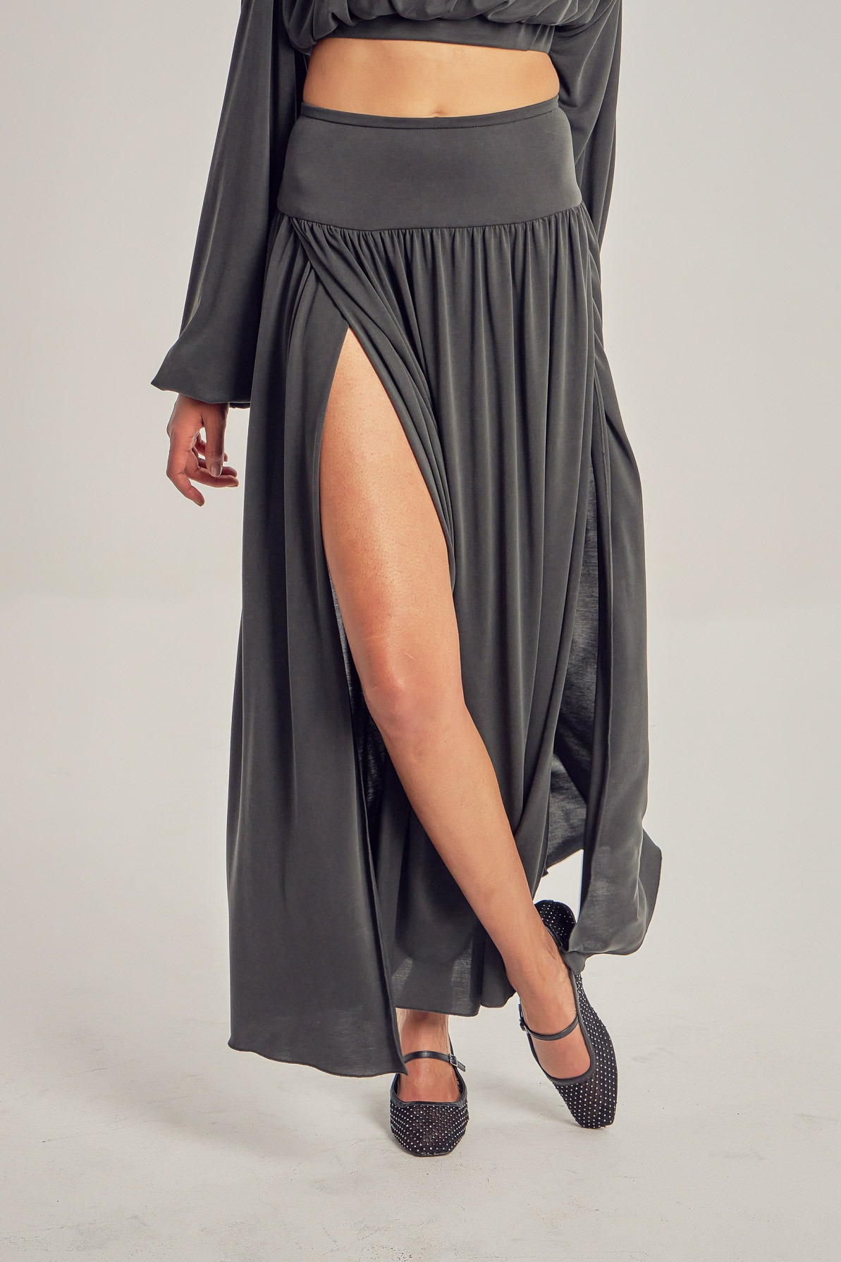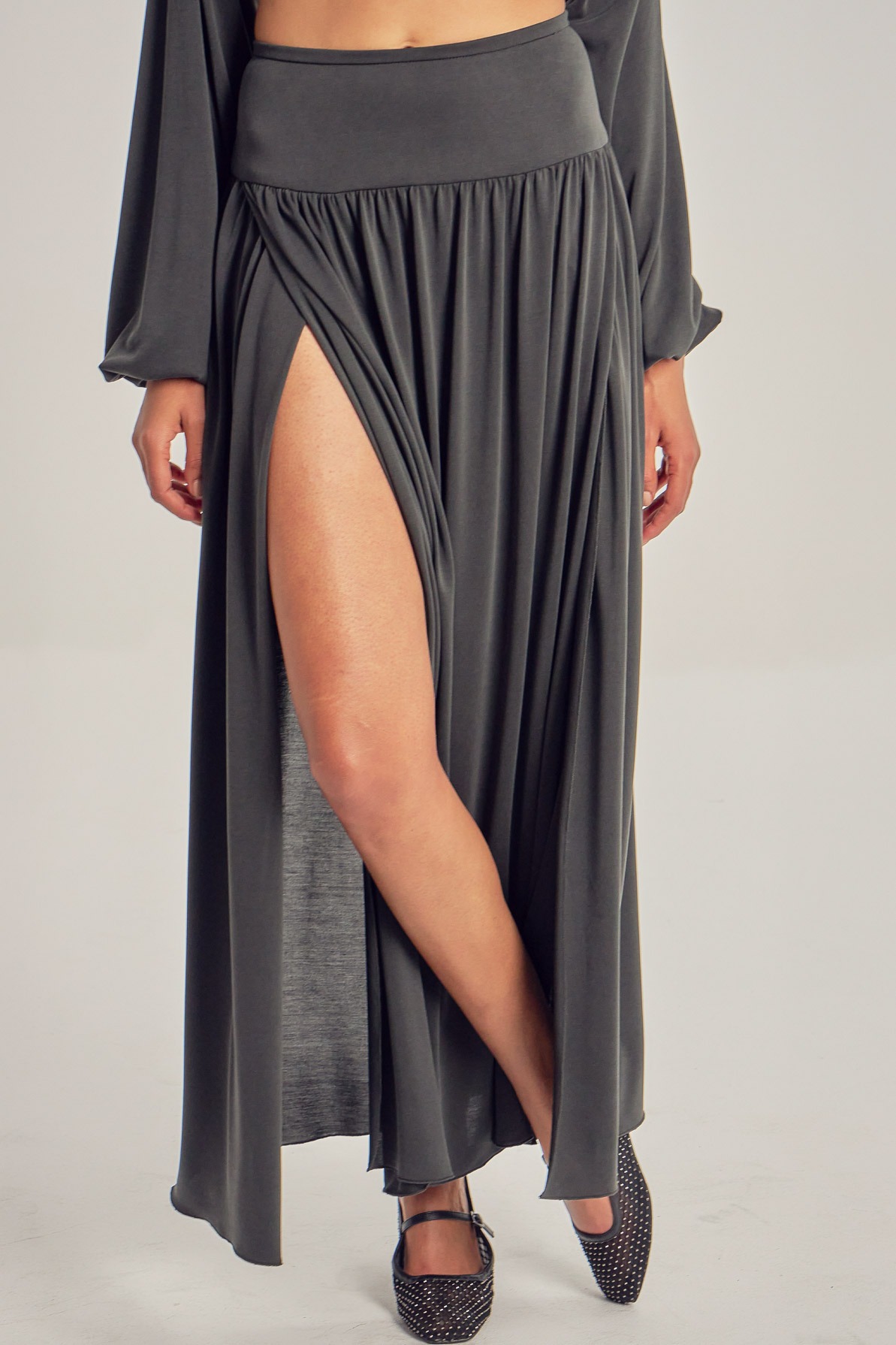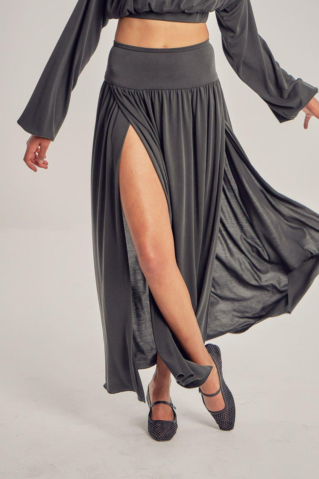 Long modal skirt, with leg slits.