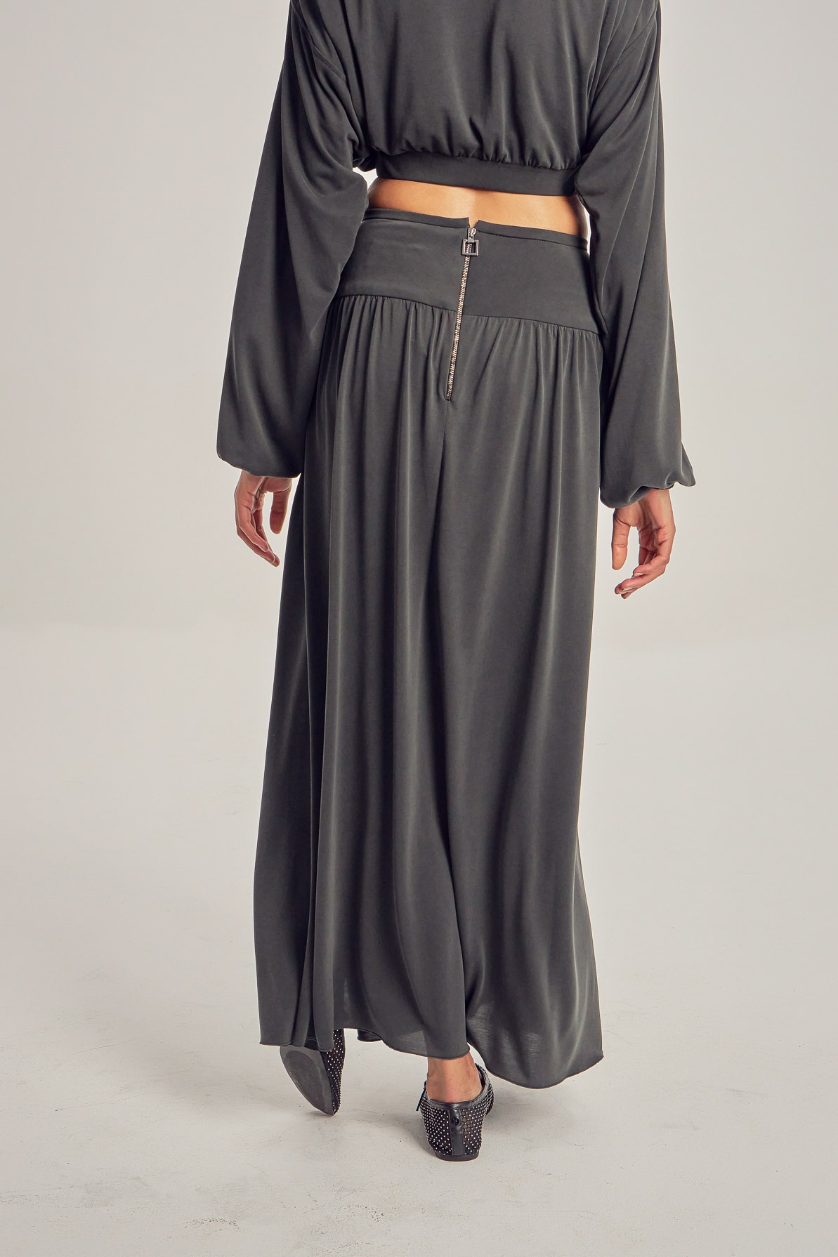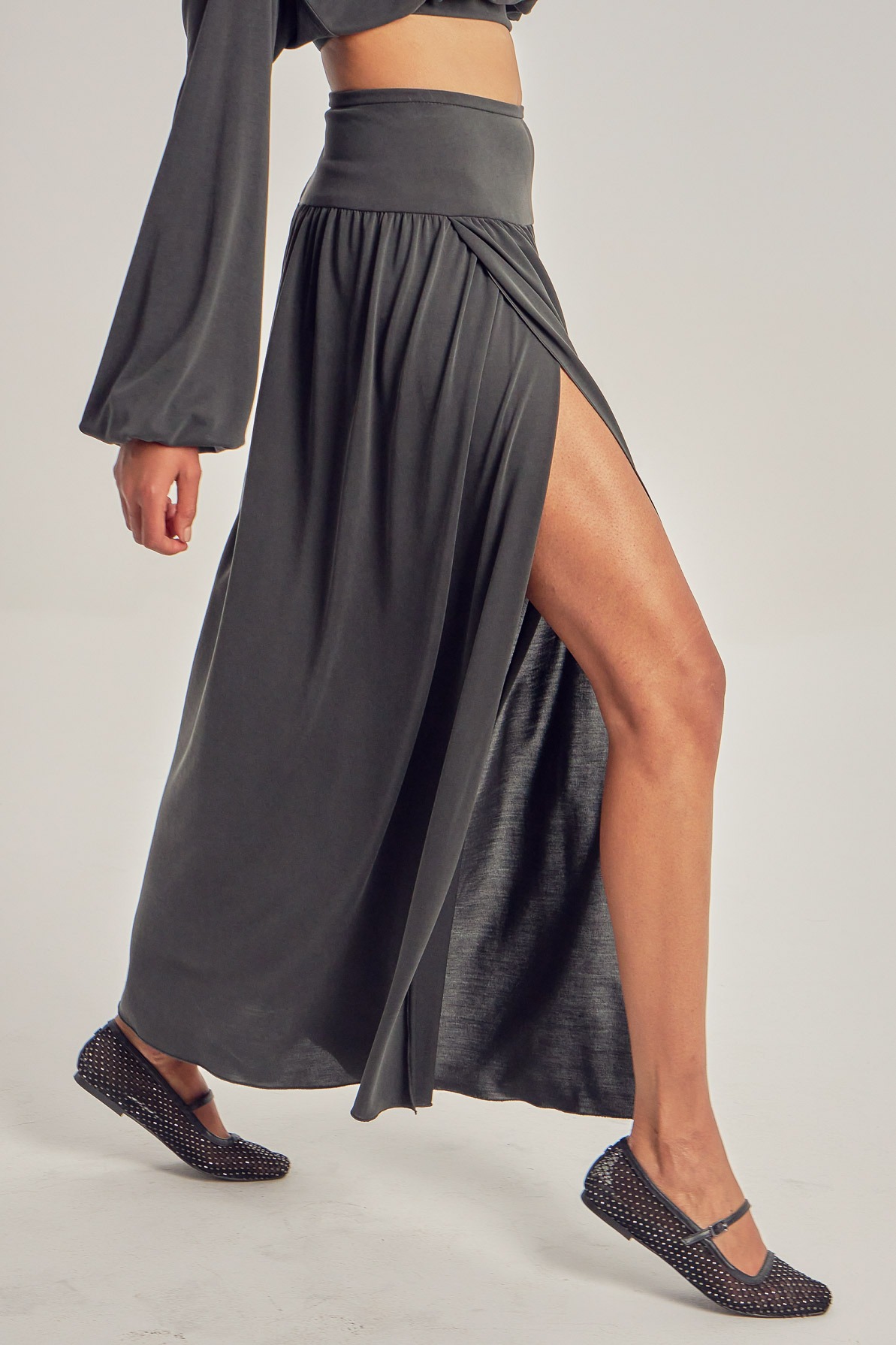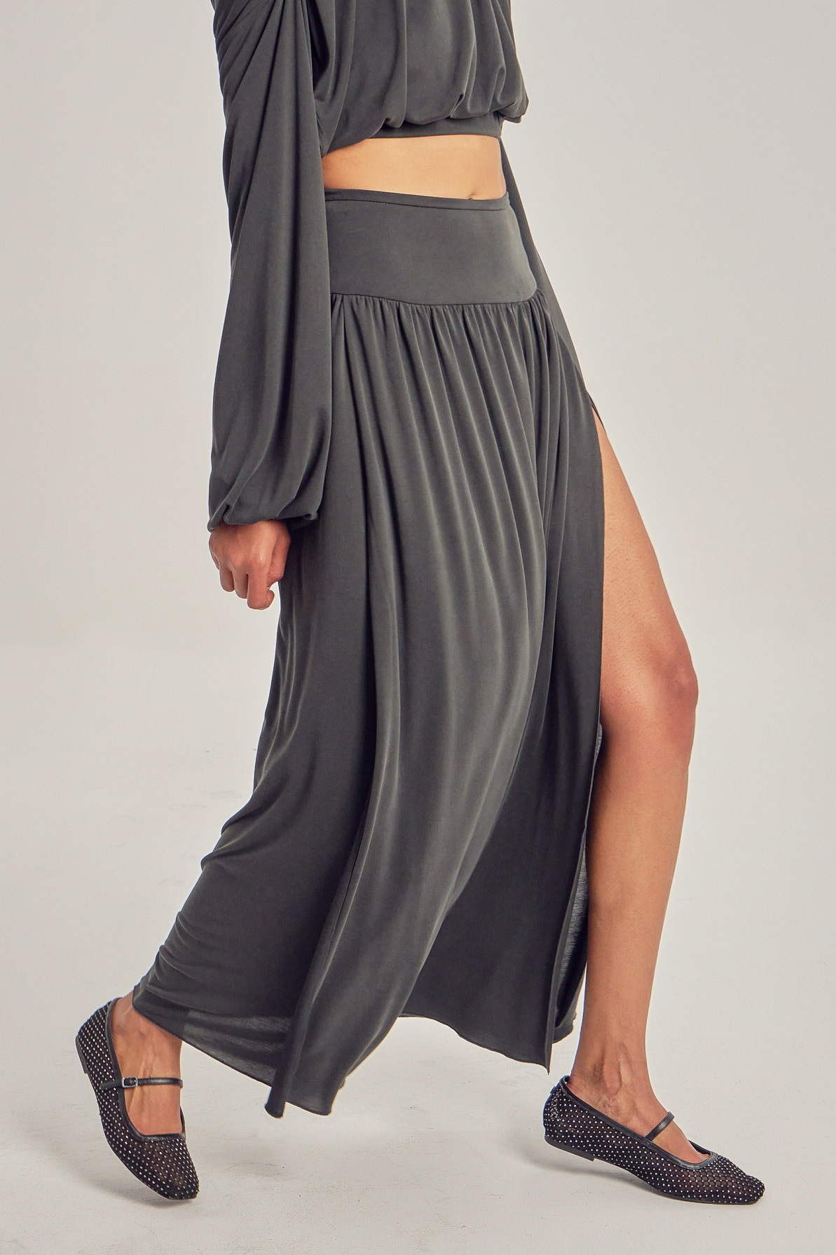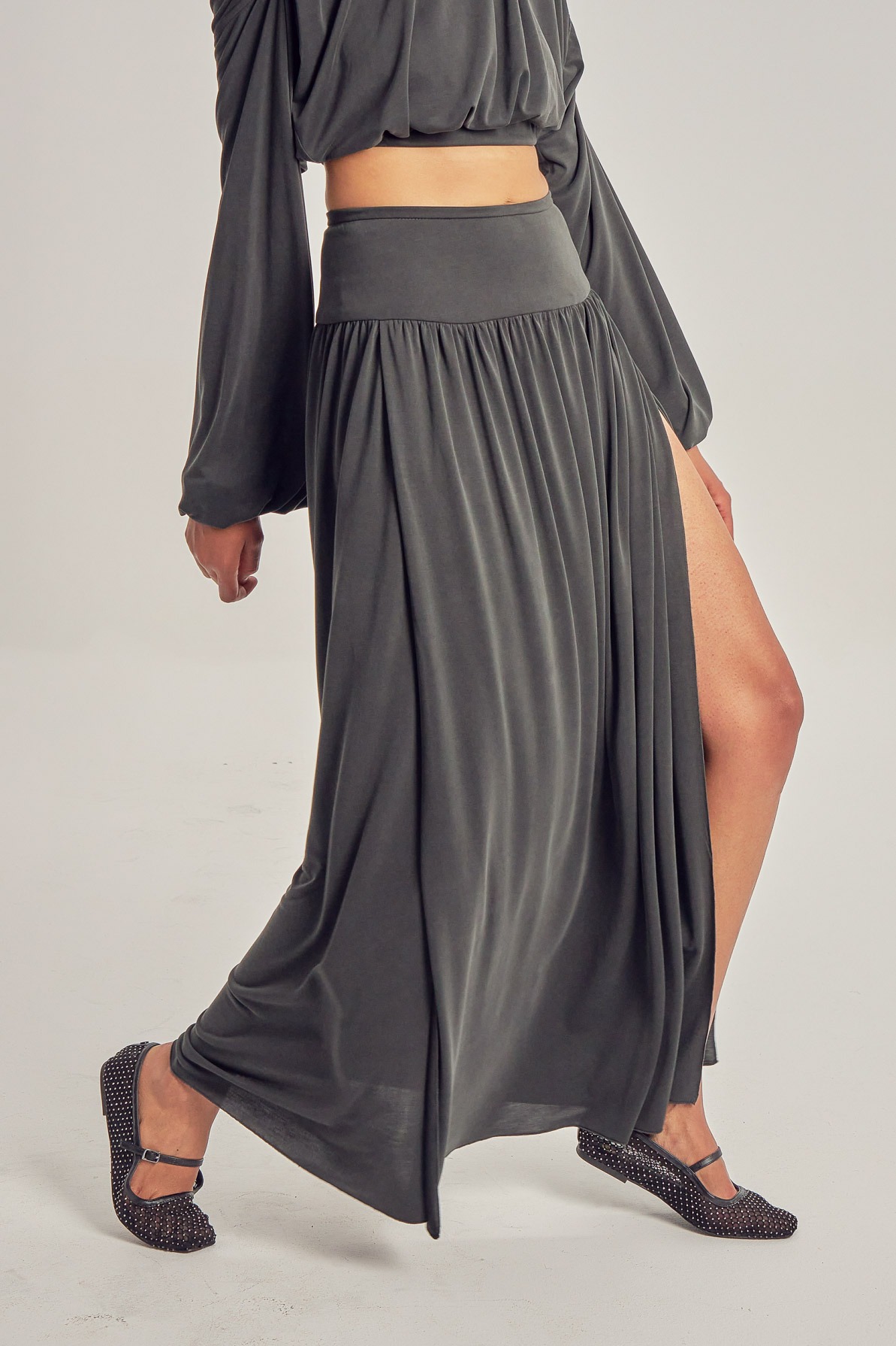 Long modal skirt, with leg slits.