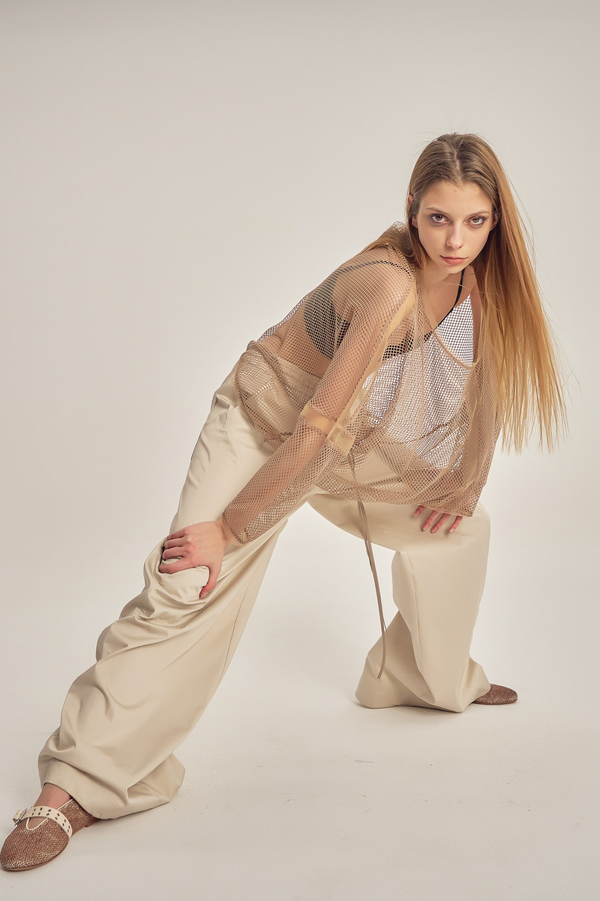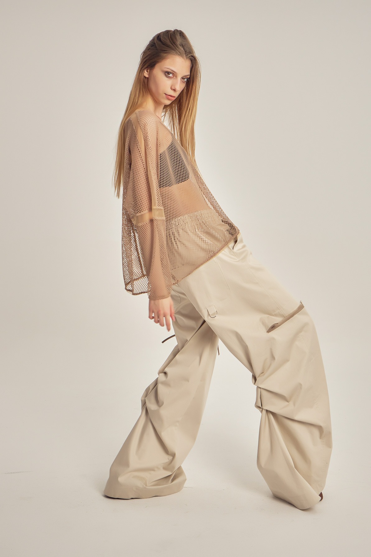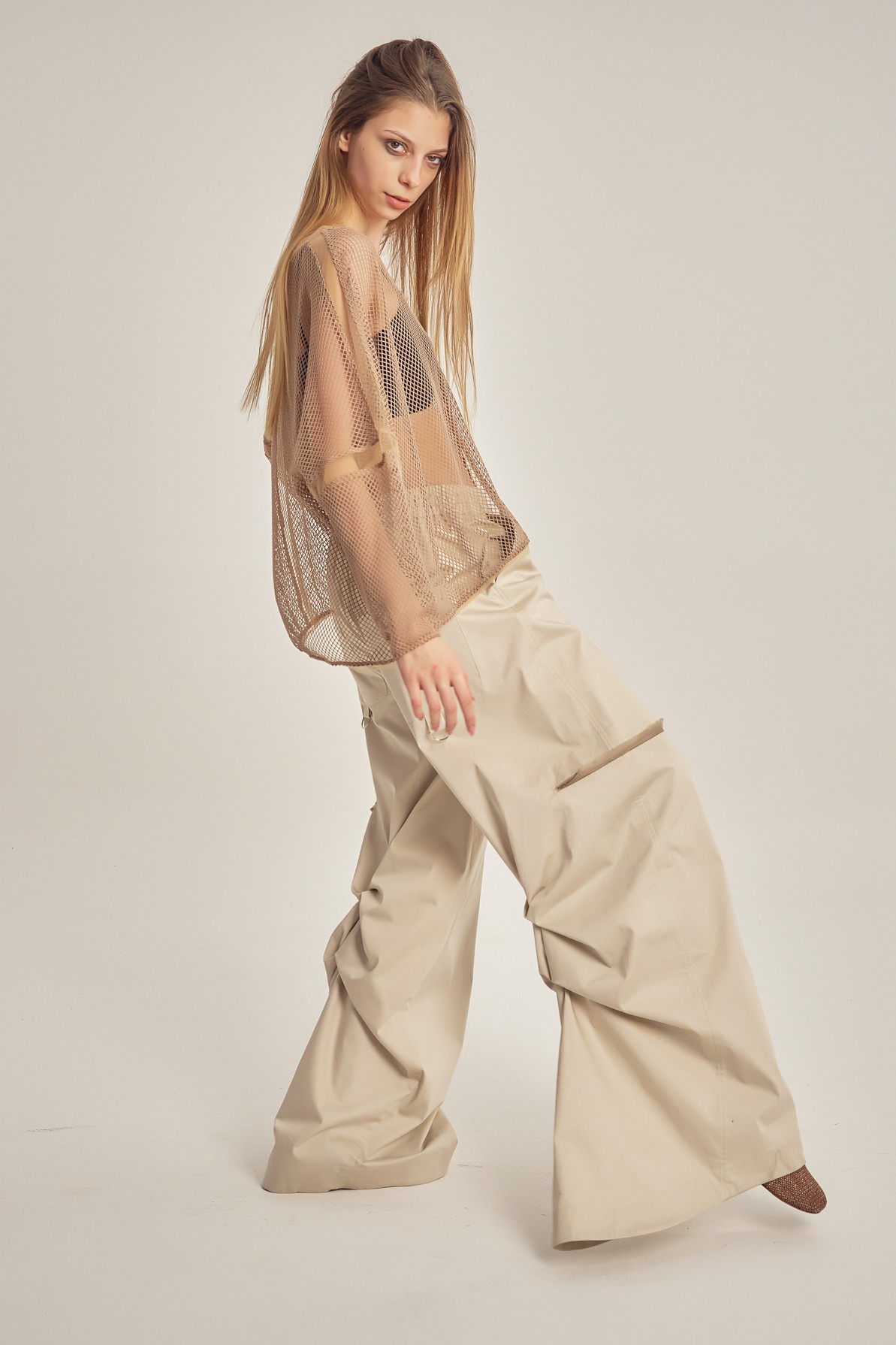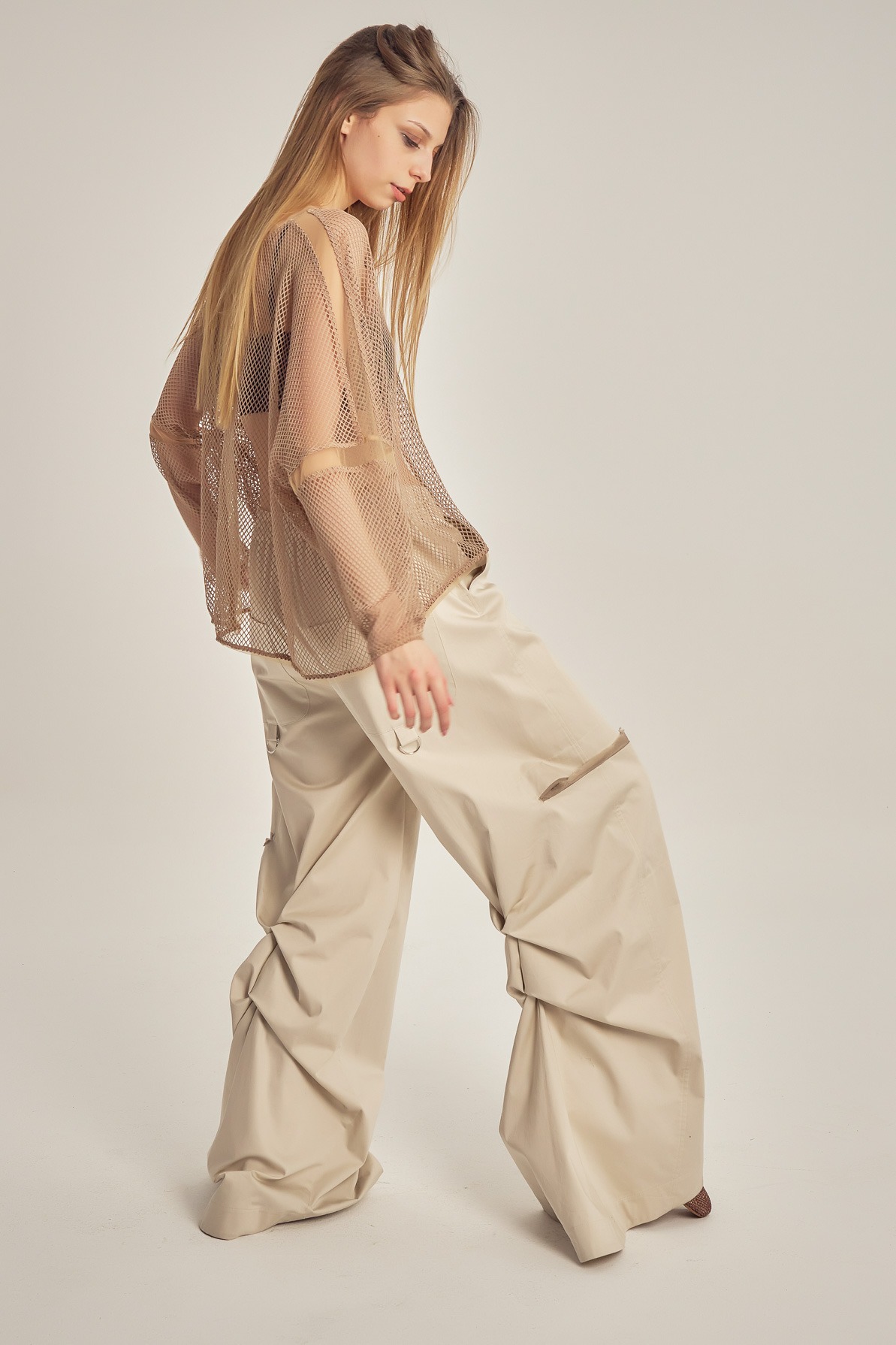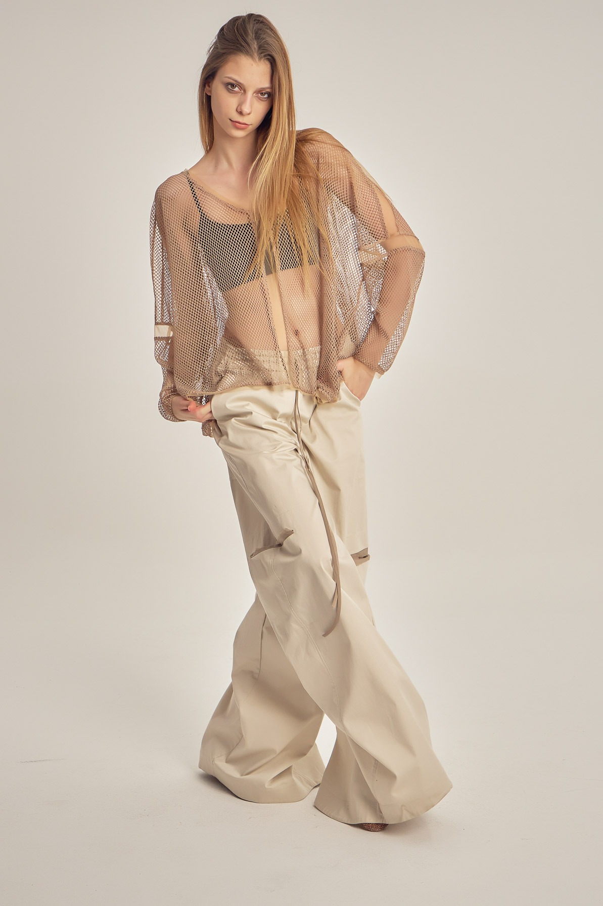 Bluză largă, transparentă, din plasă și tulle.