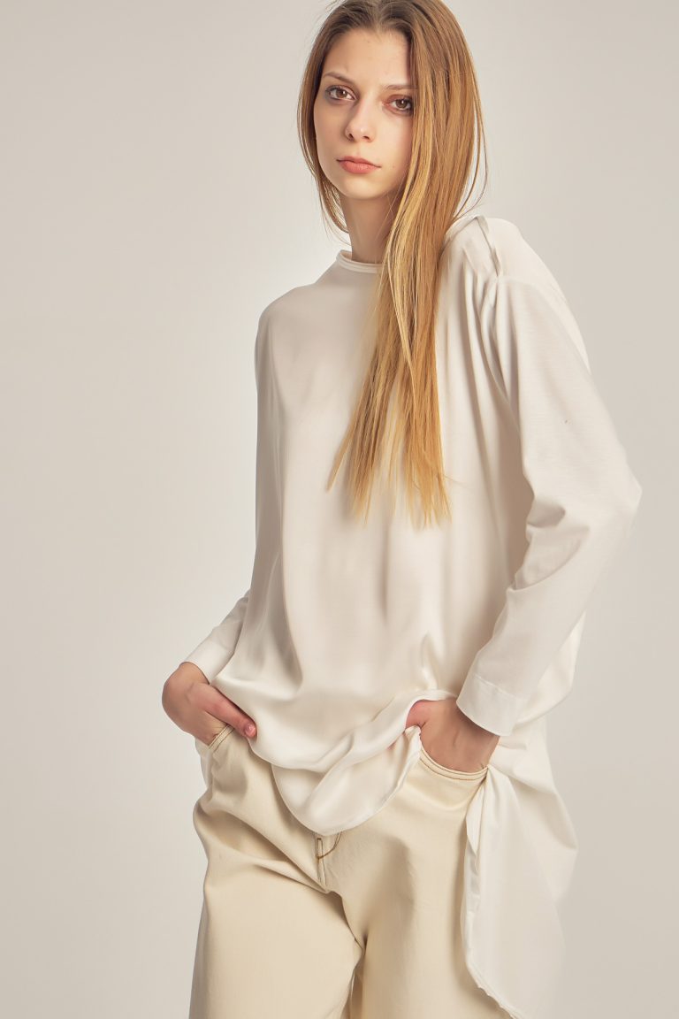 Bluză largă din tricot, cu mâneci asimetrice.