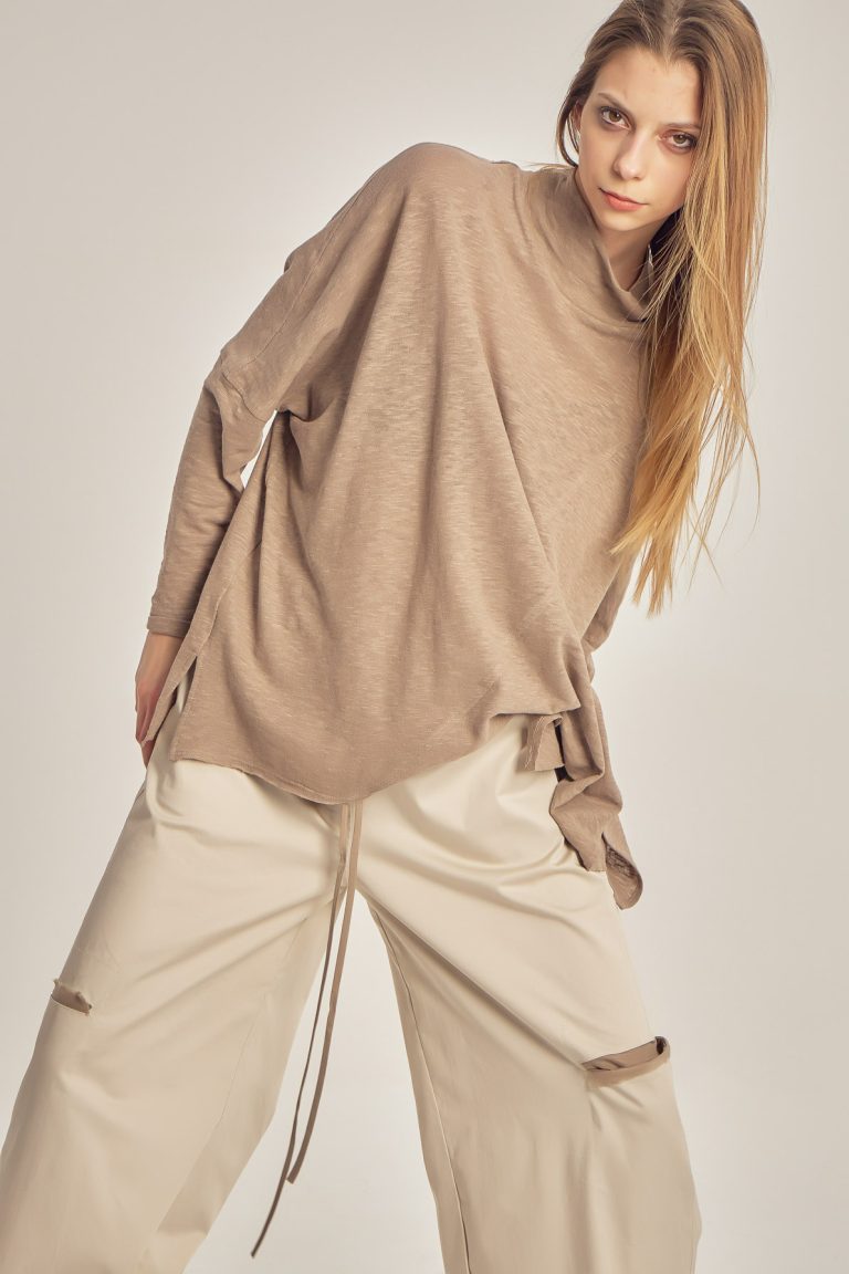 Cămașă extra largă din țesătură de vâscoză cu aspect șifonat.