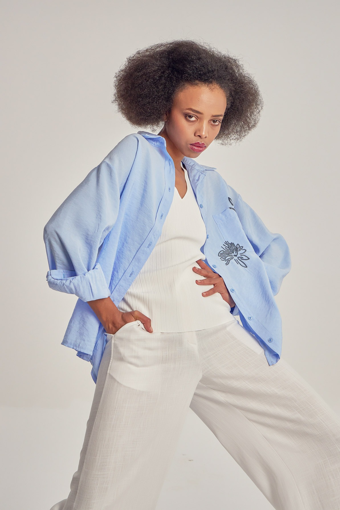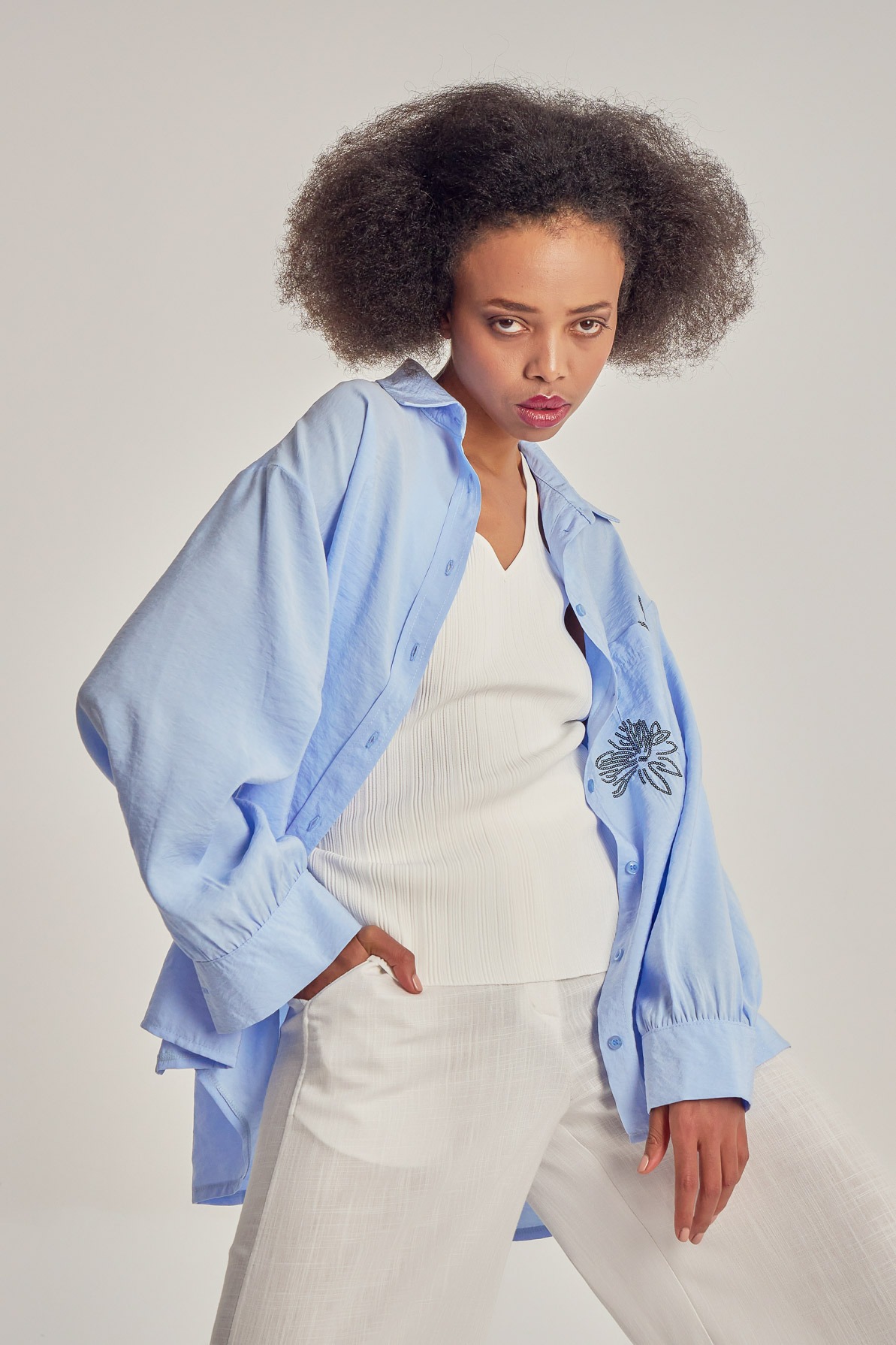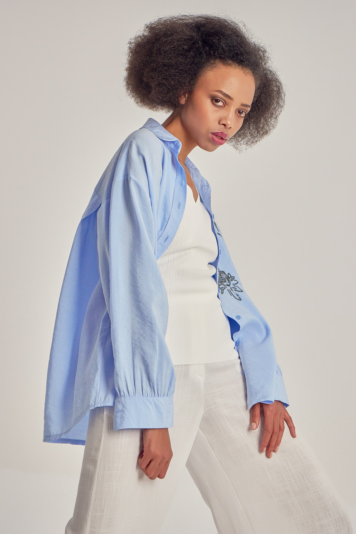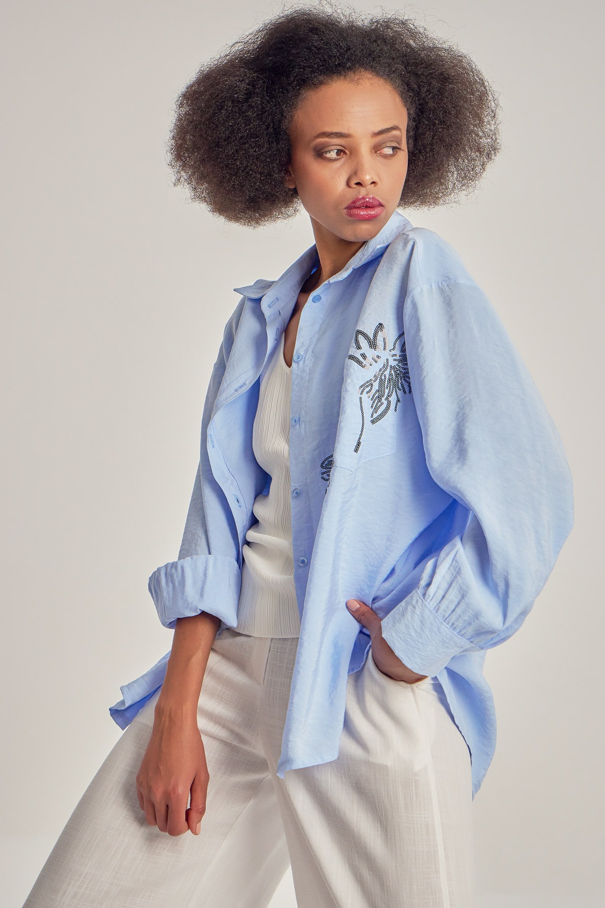 Cămașă lejeră din modal, cu broderie din paiete.