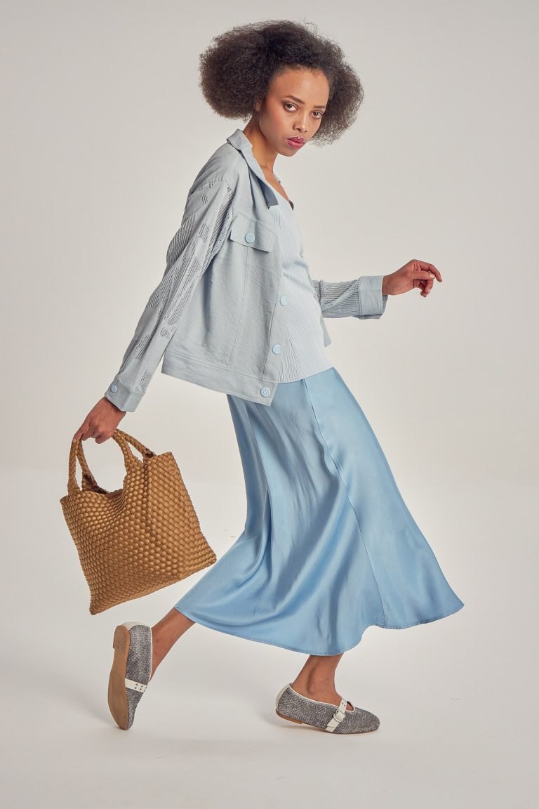 Fustă dreaptă, midi, cu talie reglabilă, din paiete și voal.