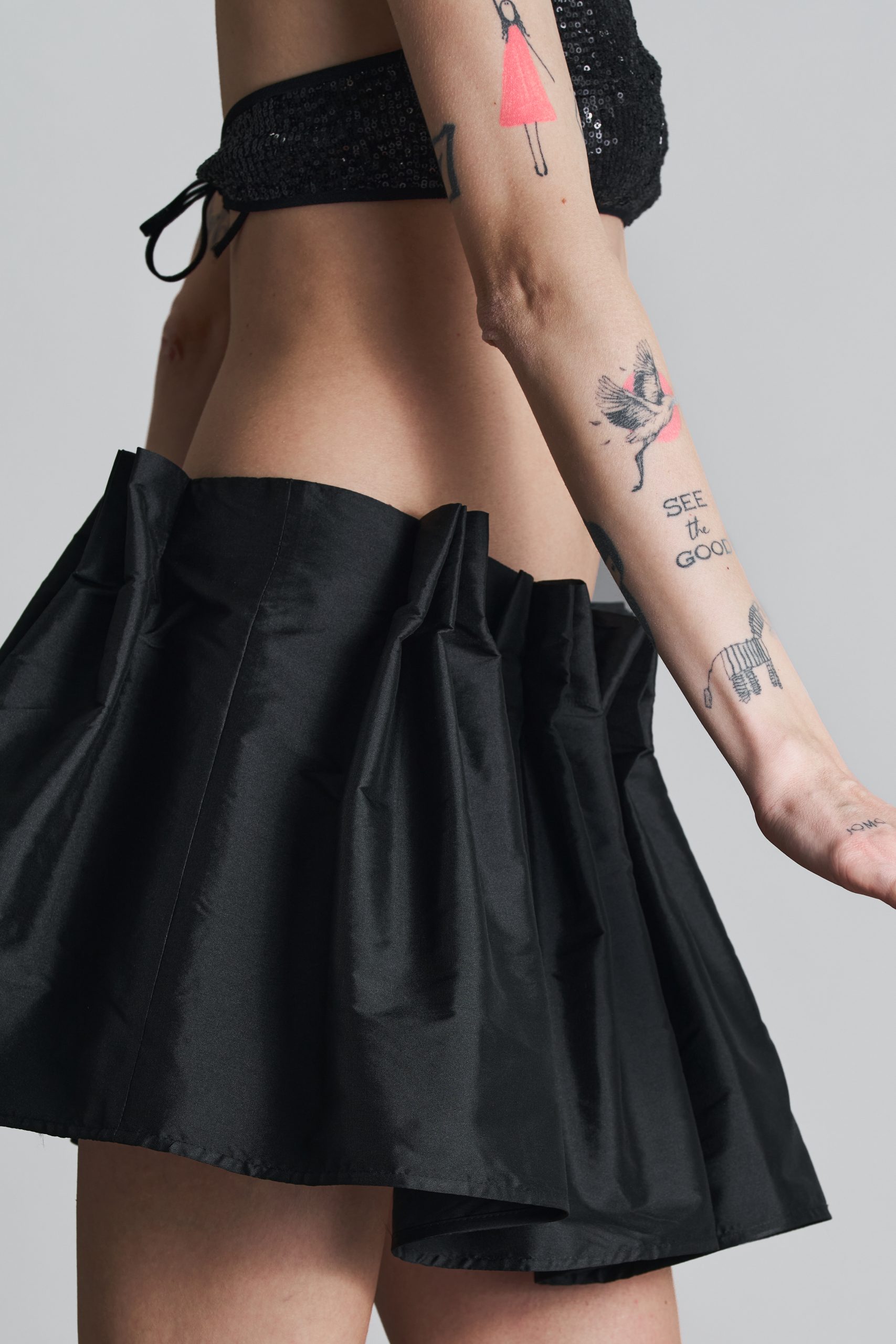 Fustă mini din tafta, cu dublură din tulle.