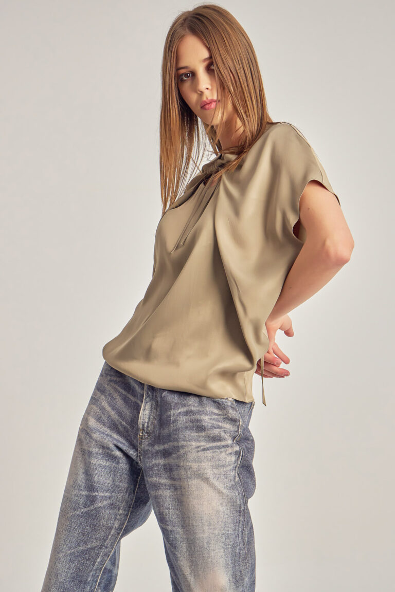 Maiou lejer din vâscoză, cu bretele subțiri și volanașe.