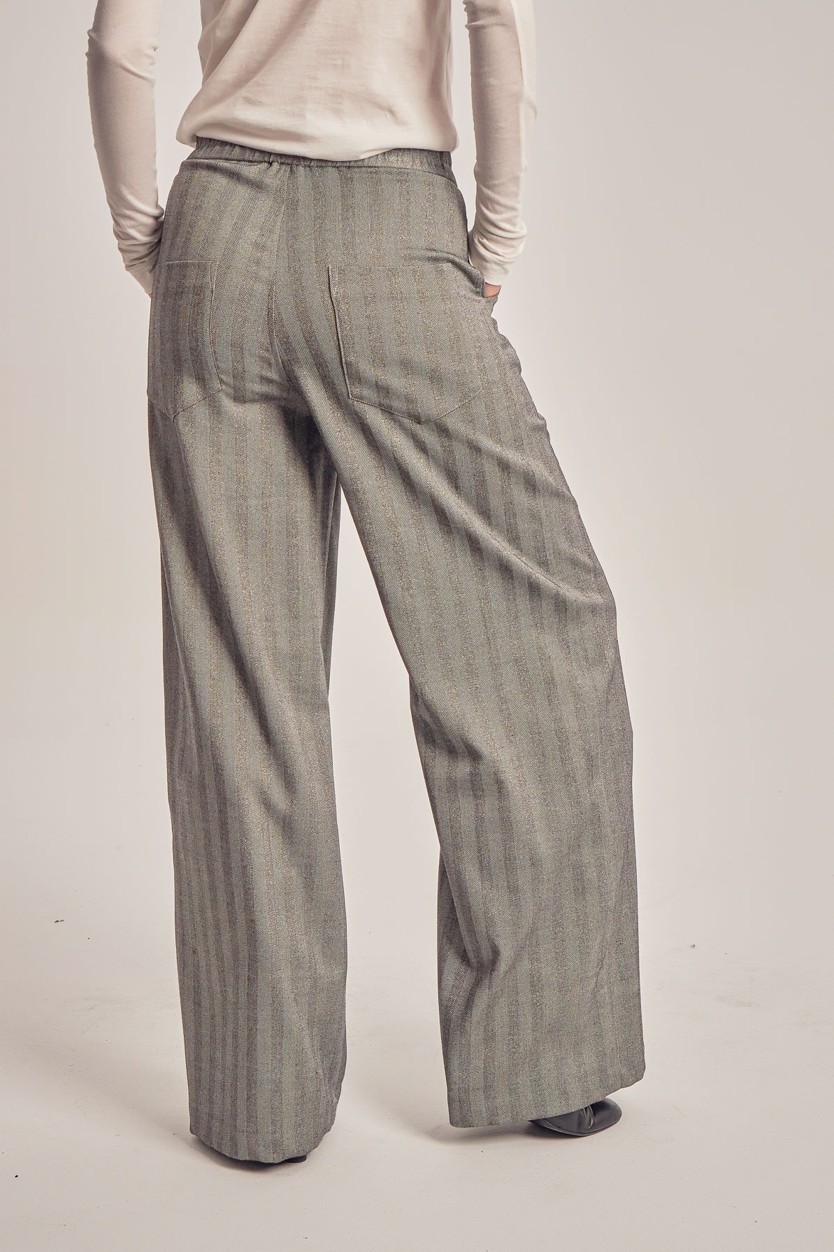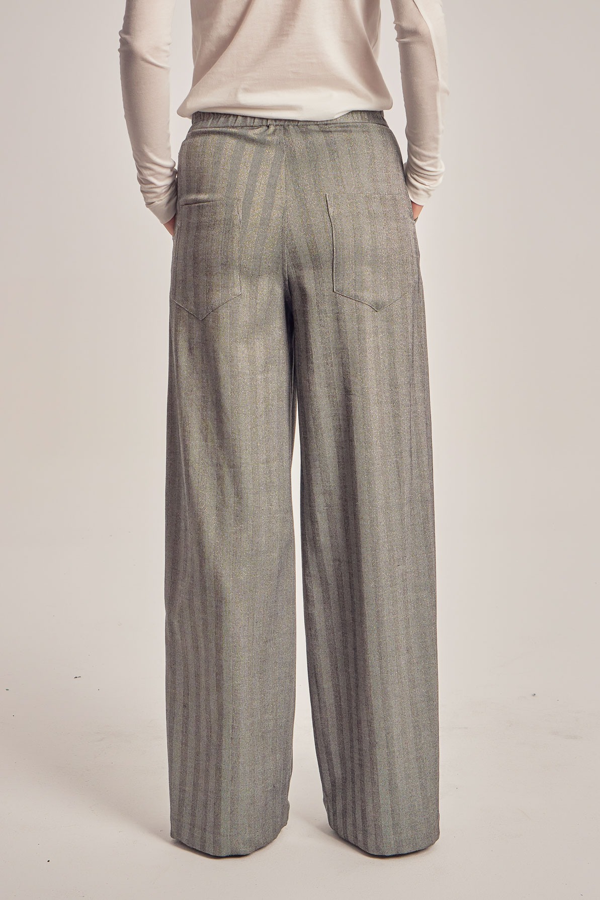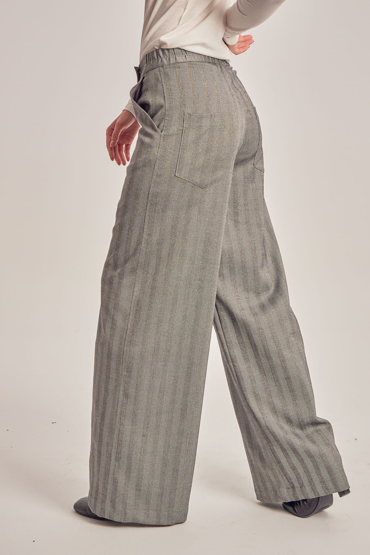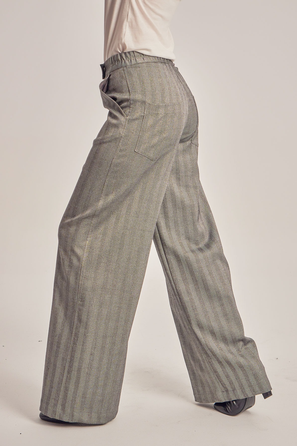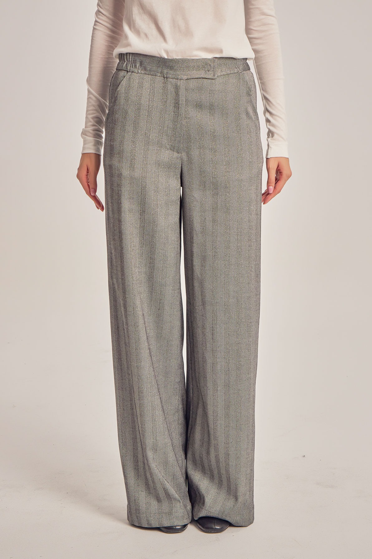 Pantaloni largi din stofă cu fir lurex, cu talia reglabilă.