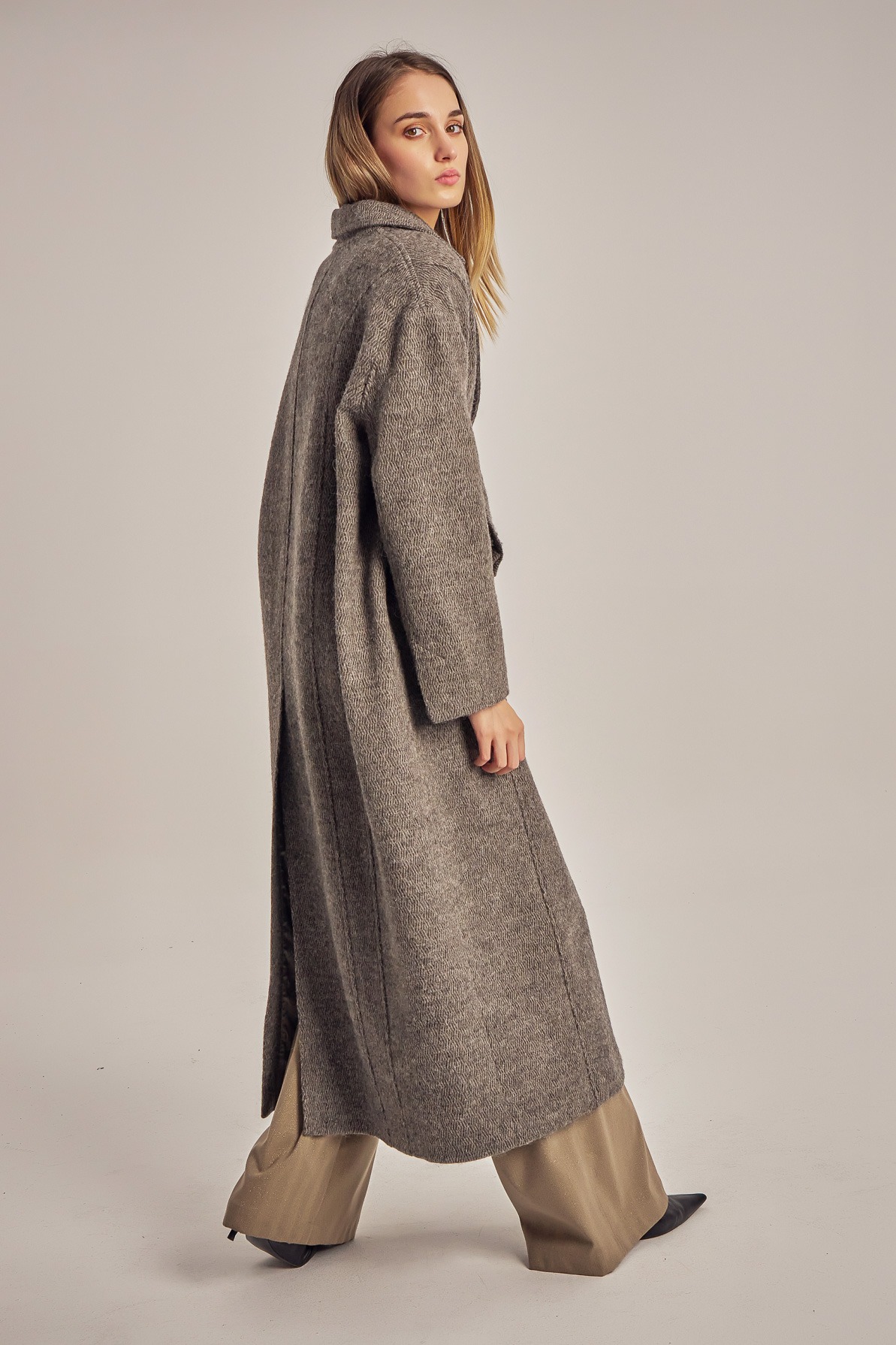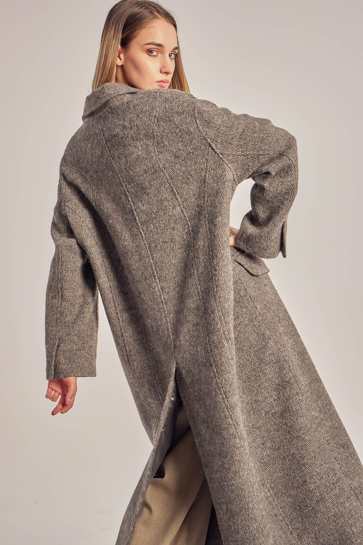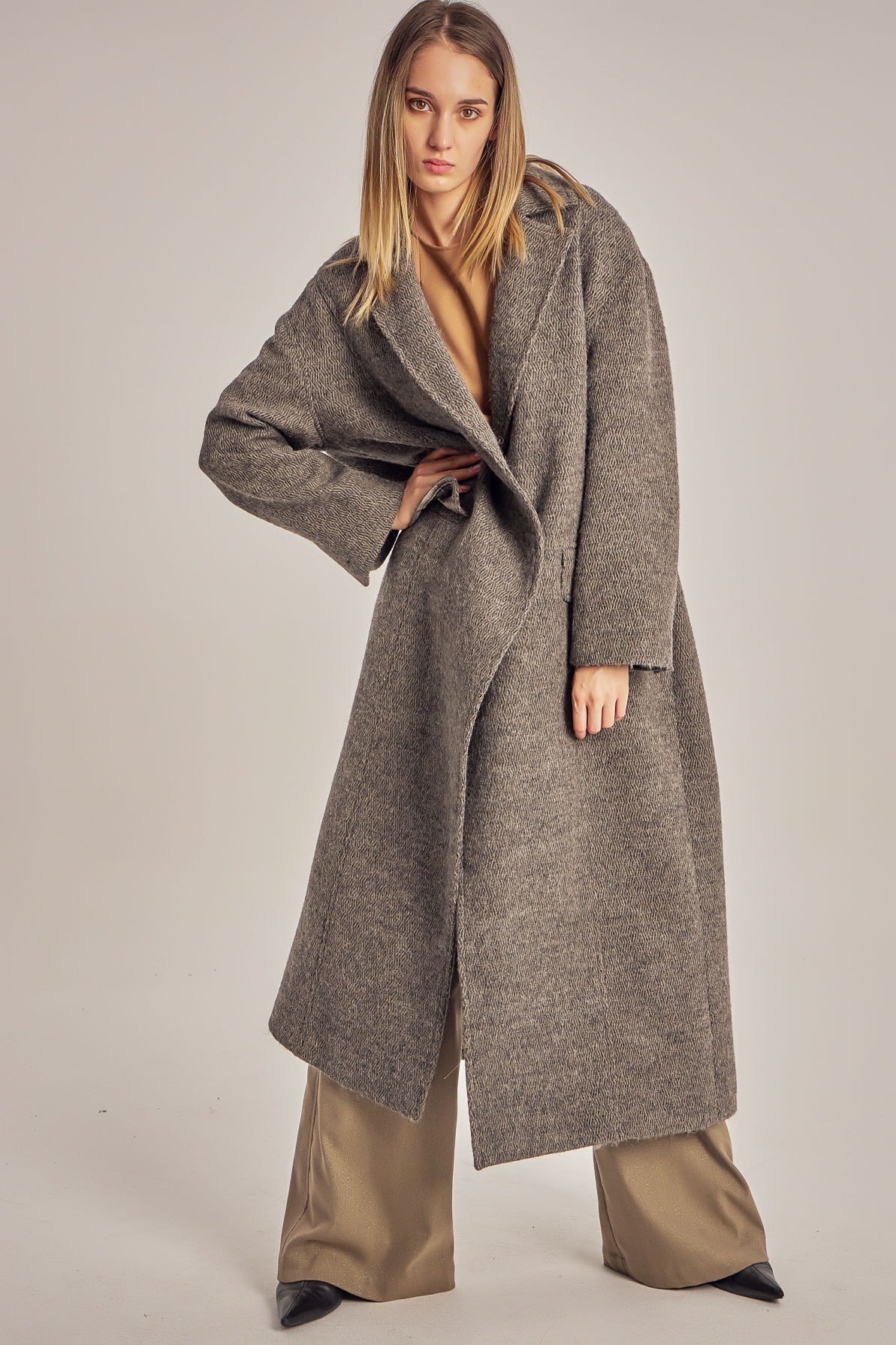 Pardesiu oversized din stofă de lână.