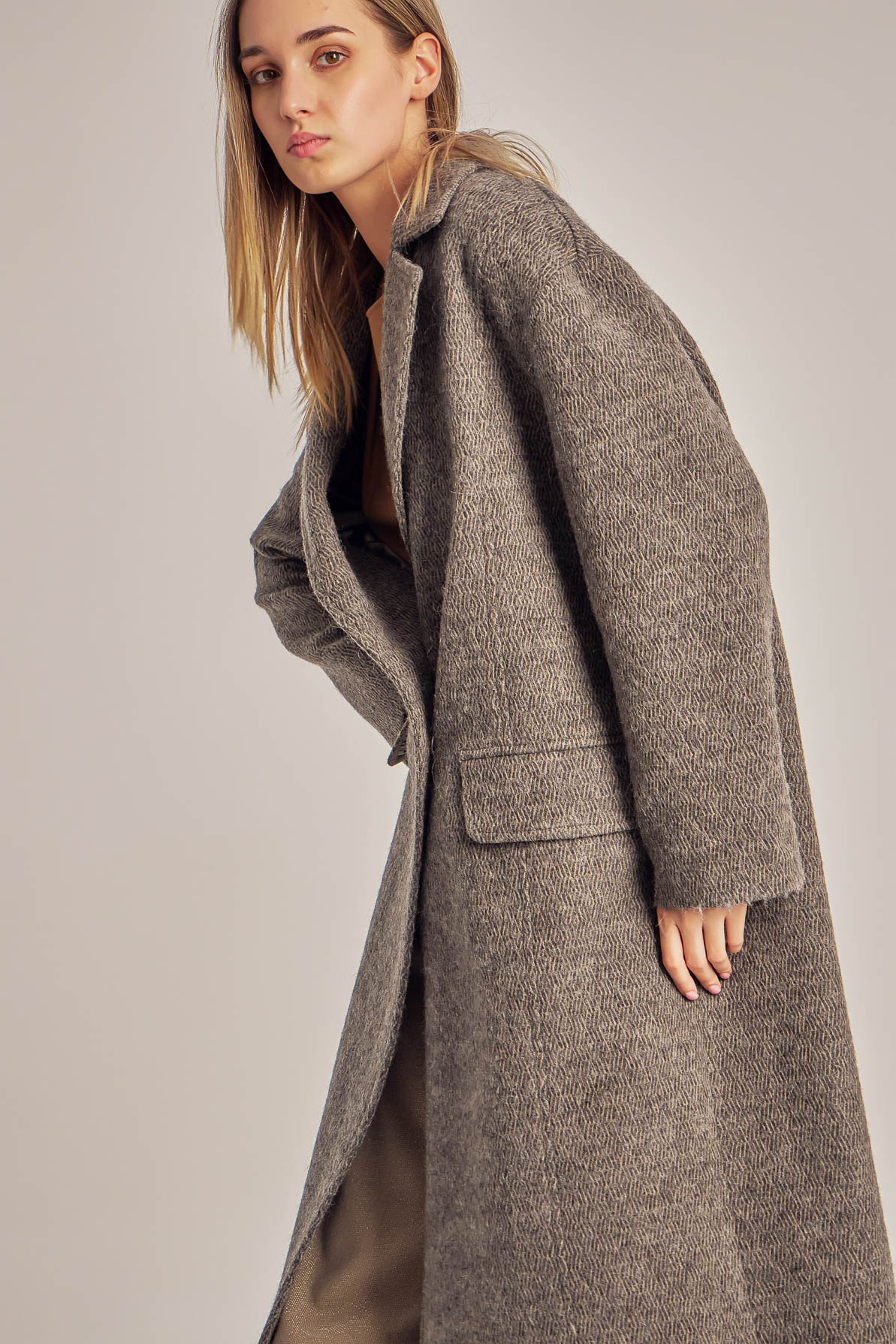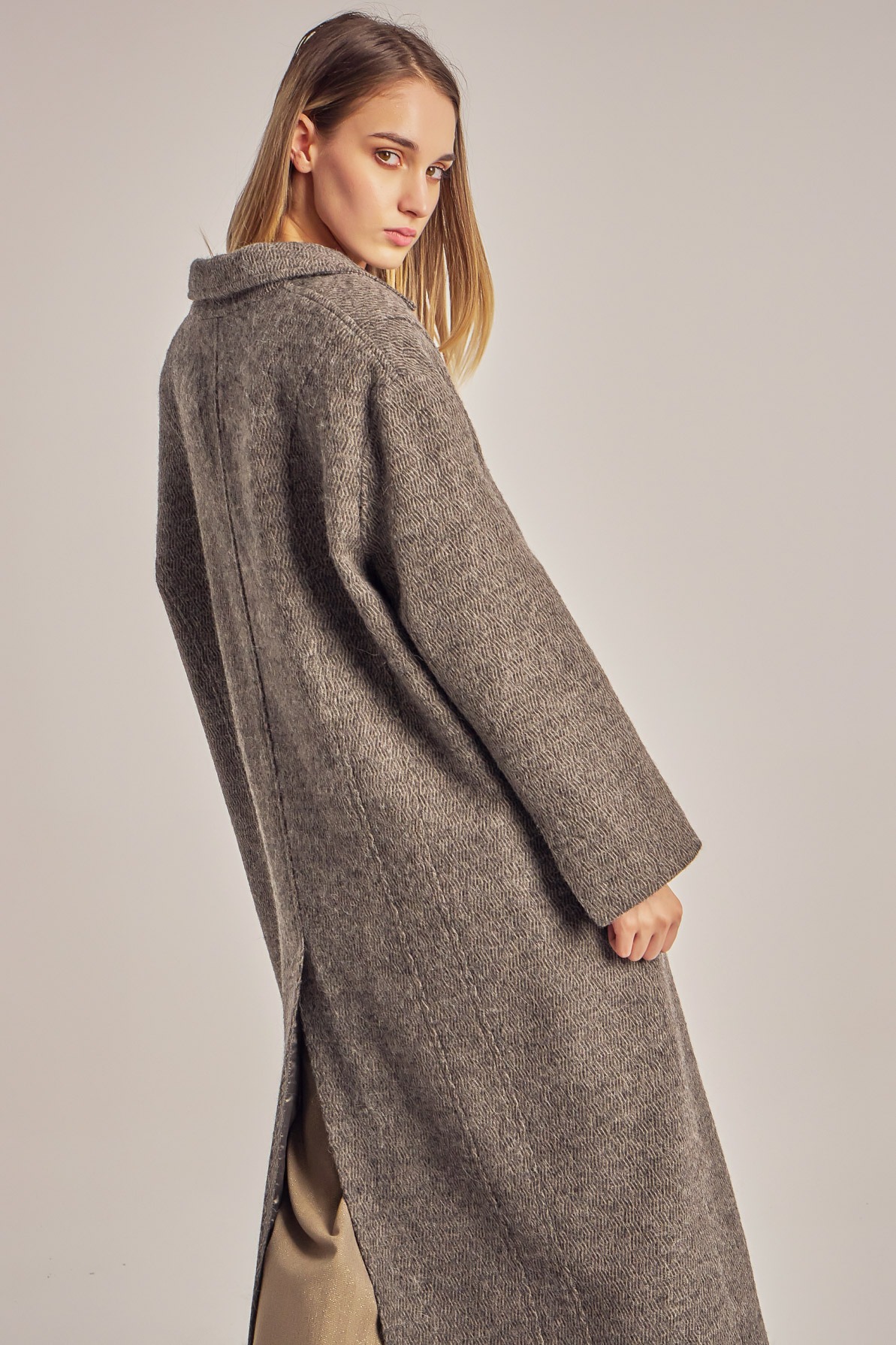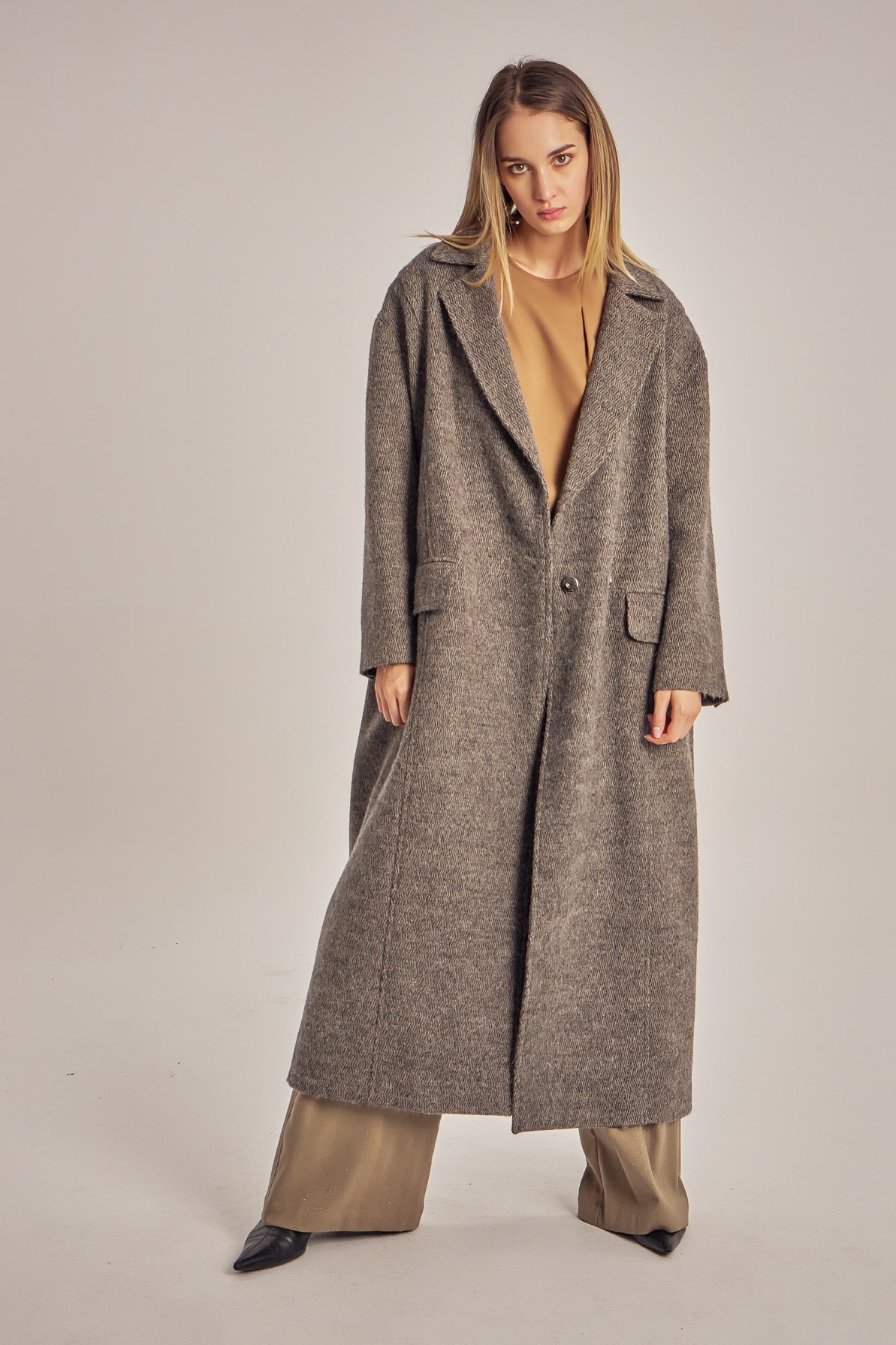 Pardesiu oversized din stofă de lână.