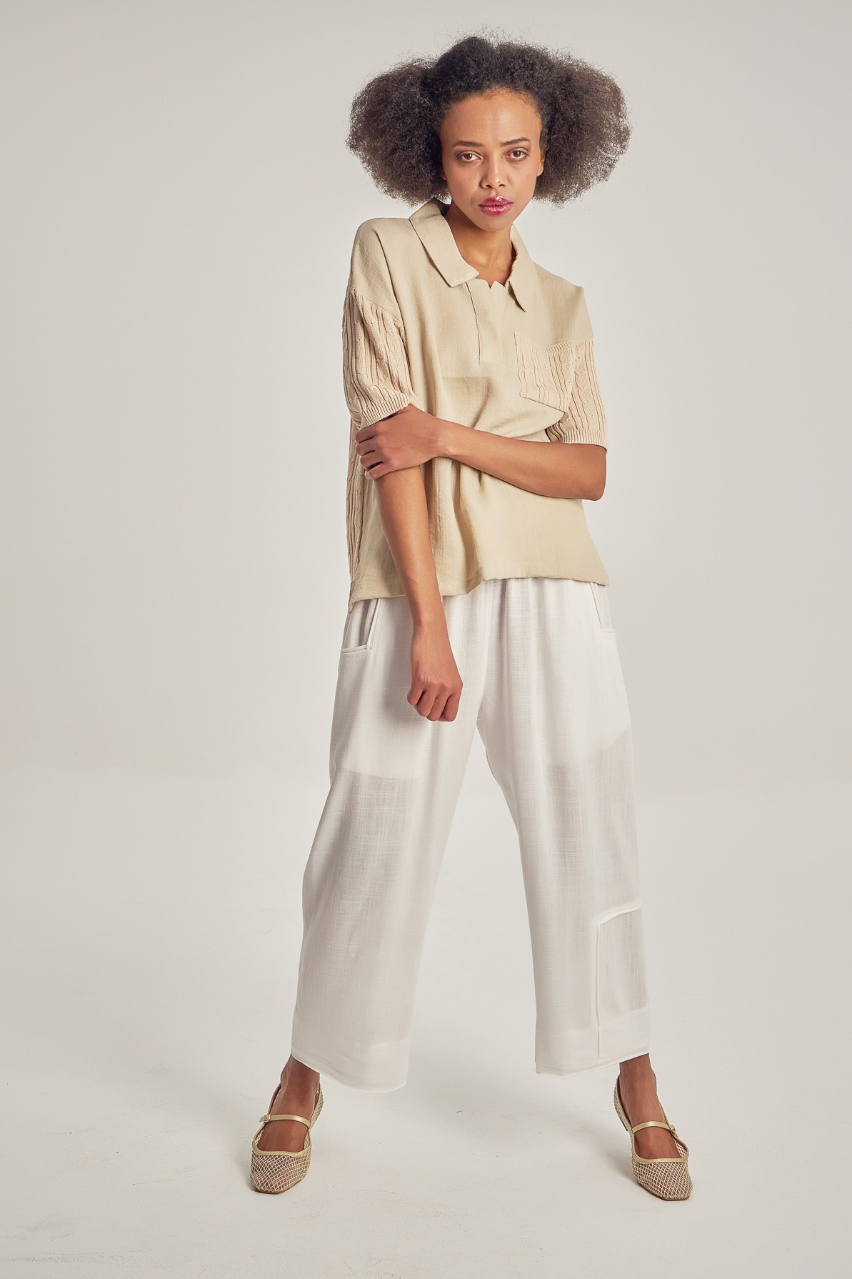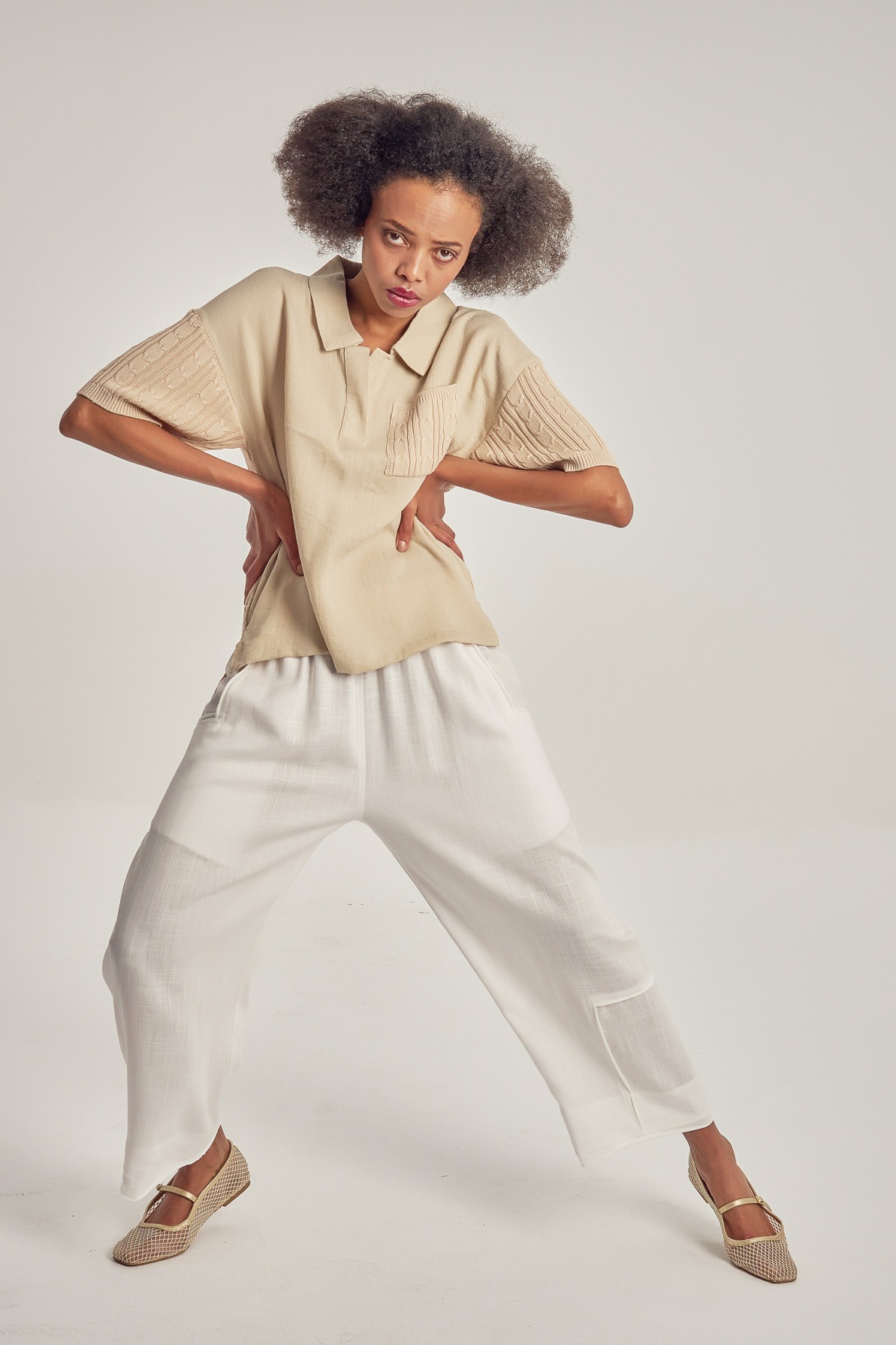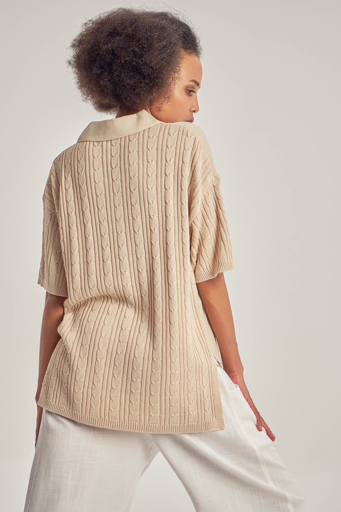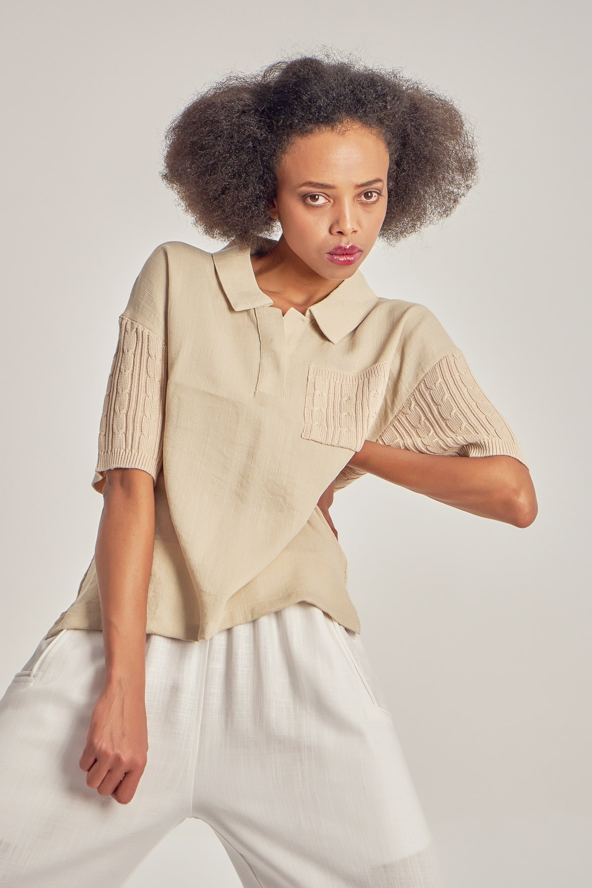Top lejer cu maneci scurte, din in si jerse cu vascoza.