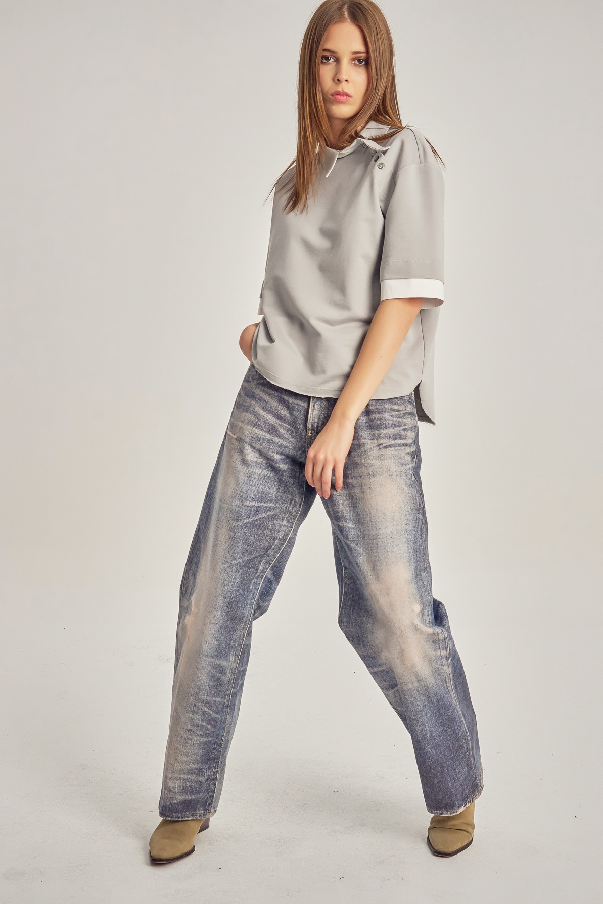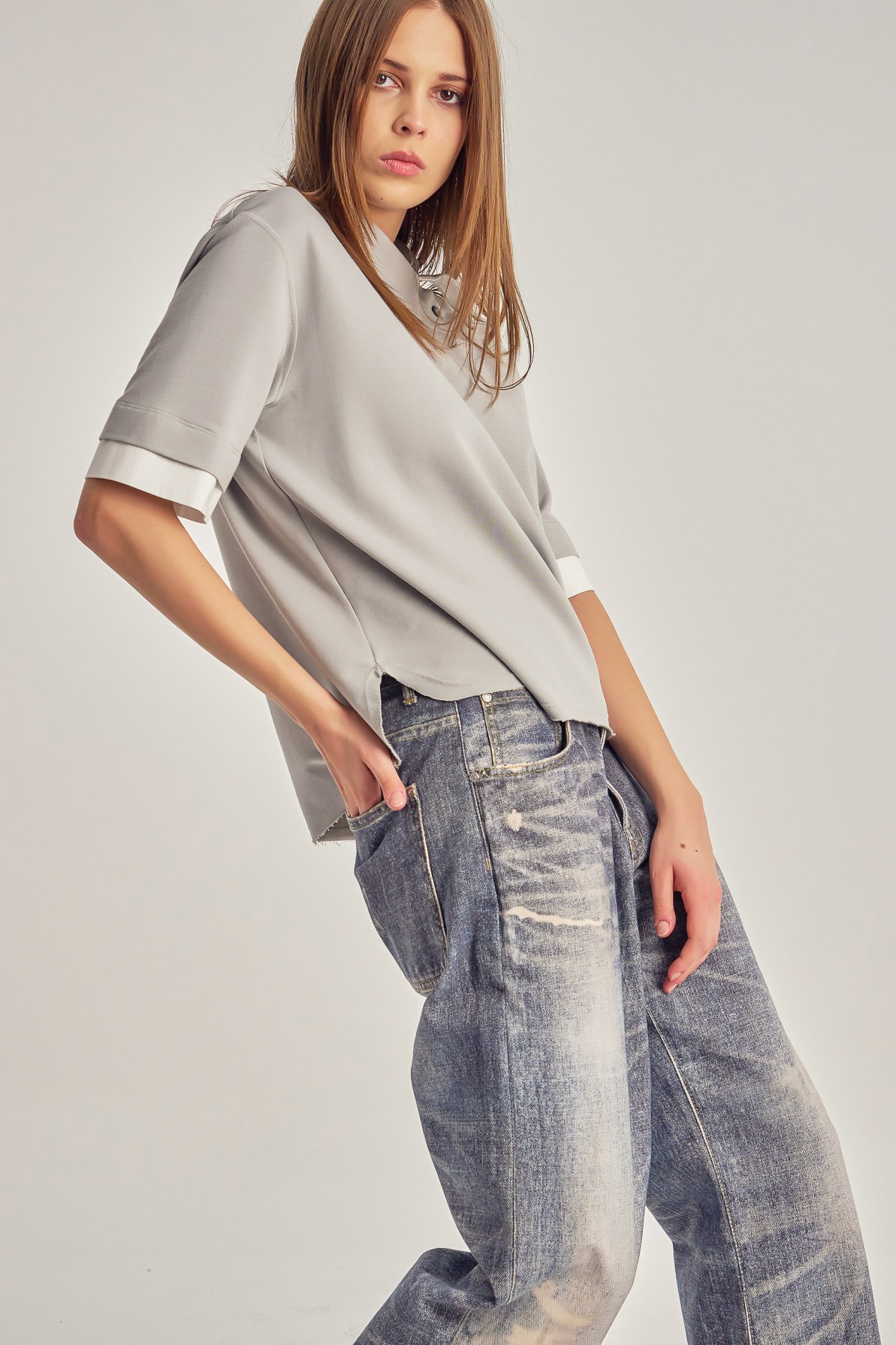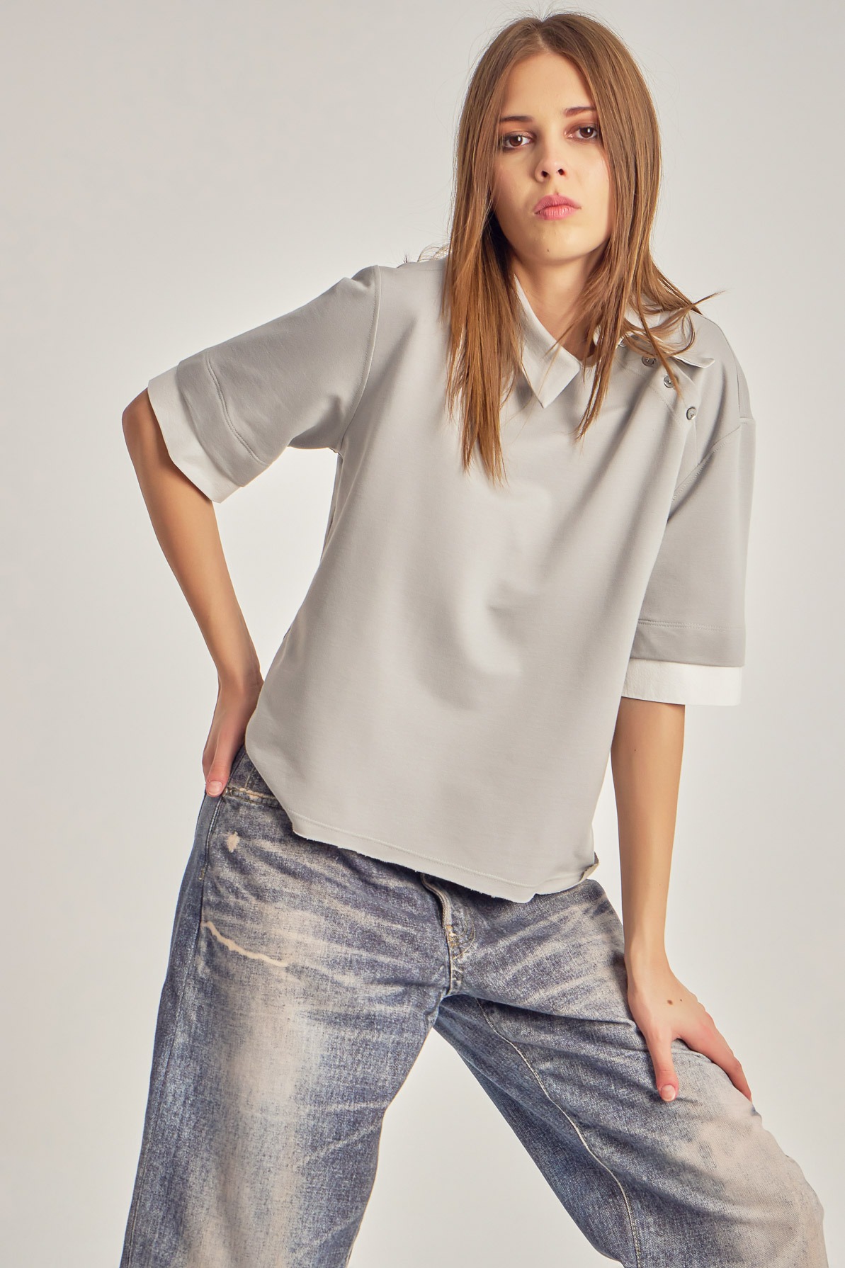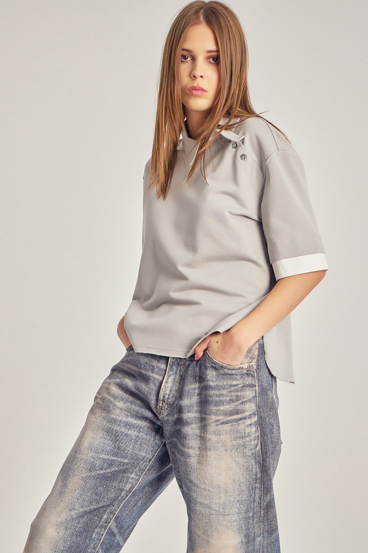 Realizat dintr-un material moale și respirabil, acest tricou combină confortul tricotului cu eleganța discretă a gulerului tip cămașă. Croiala lejeră și liniile curate îl fac ușor de integrat atât în ținute casual, cât și în outfituri smart-casual.