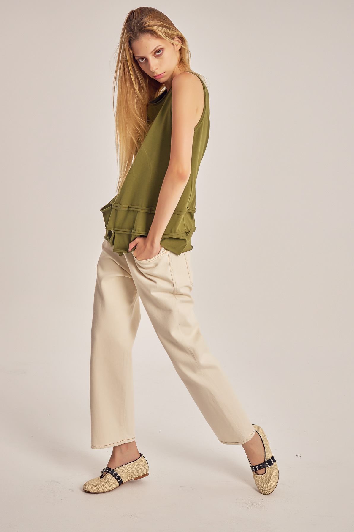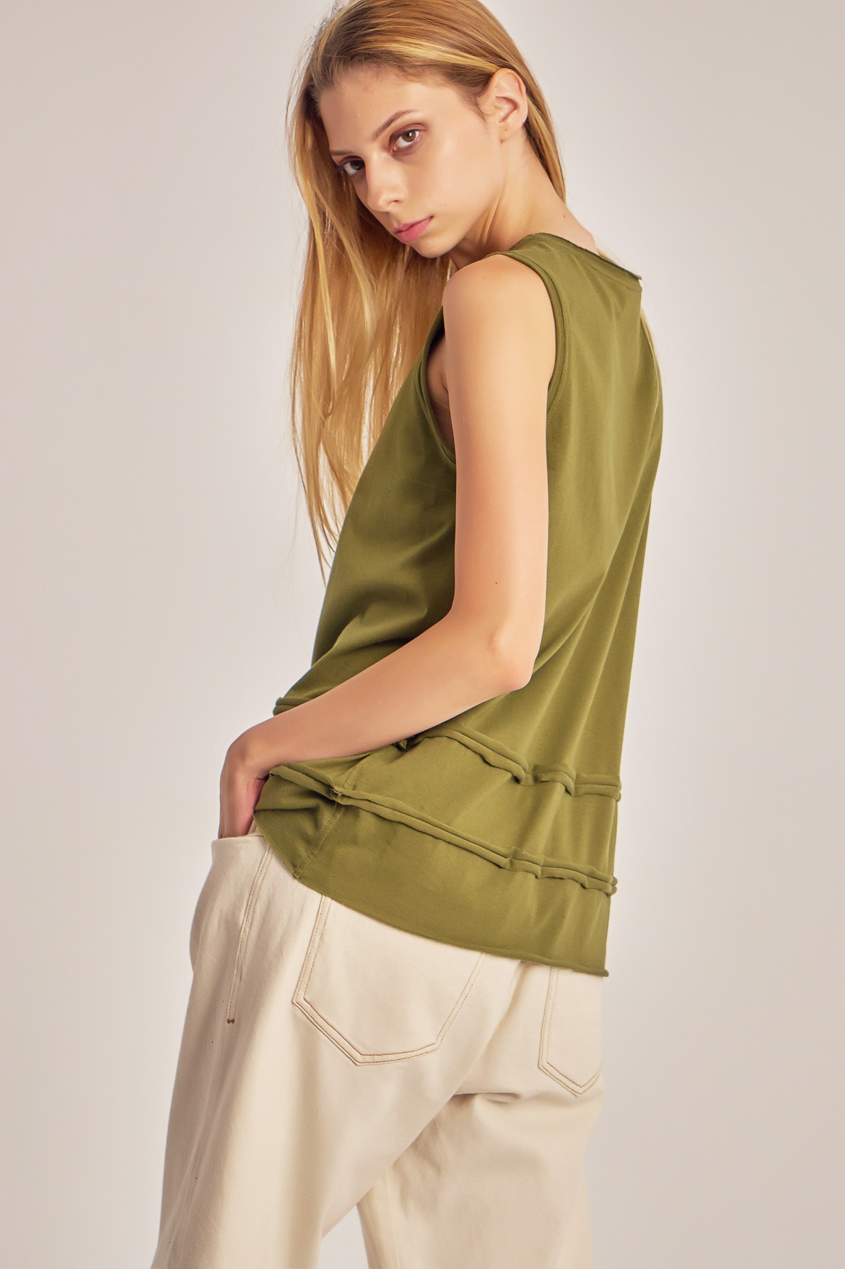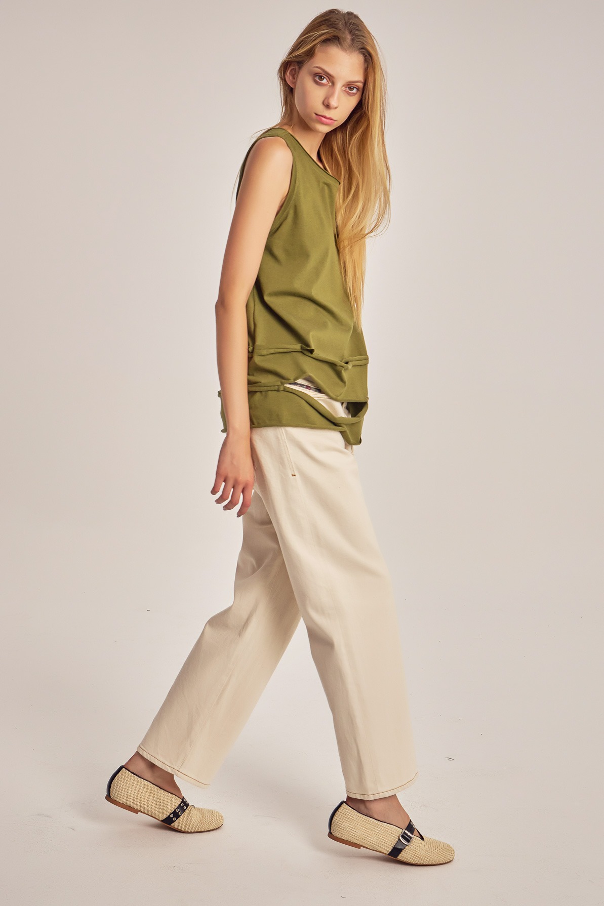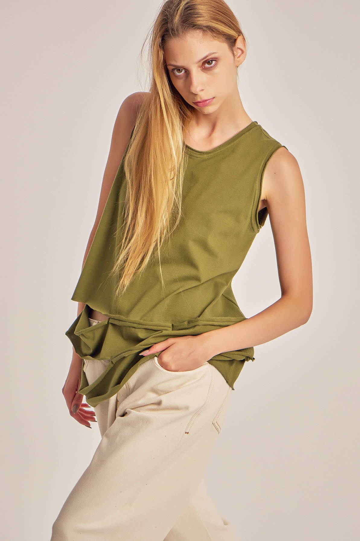 Top din jerse de bumbac, cu decupaje.