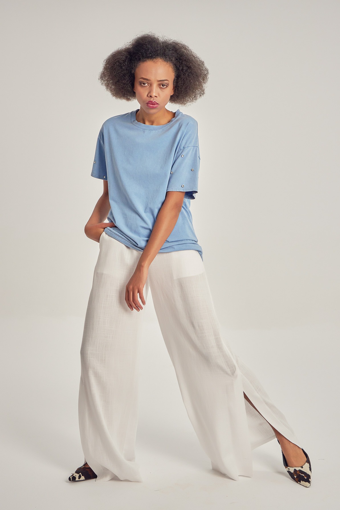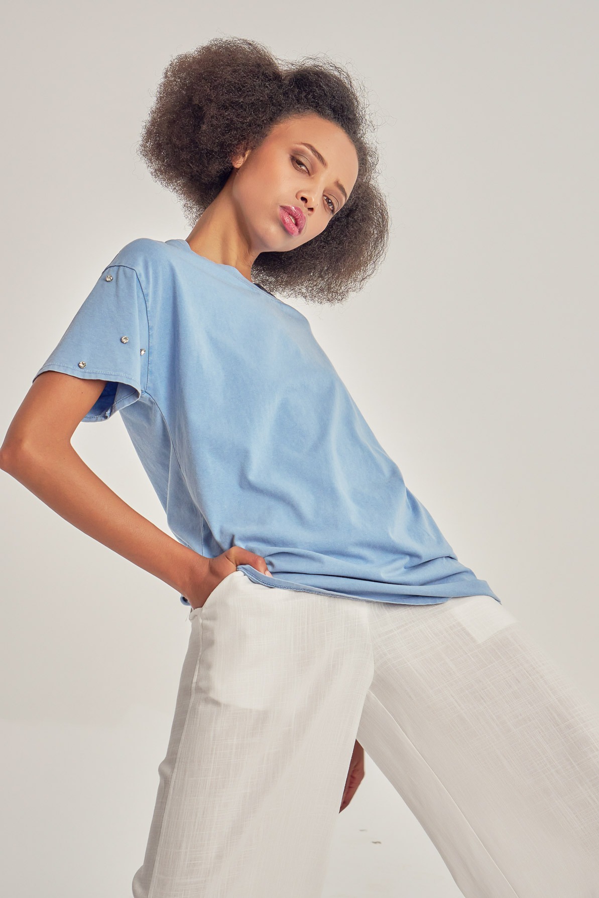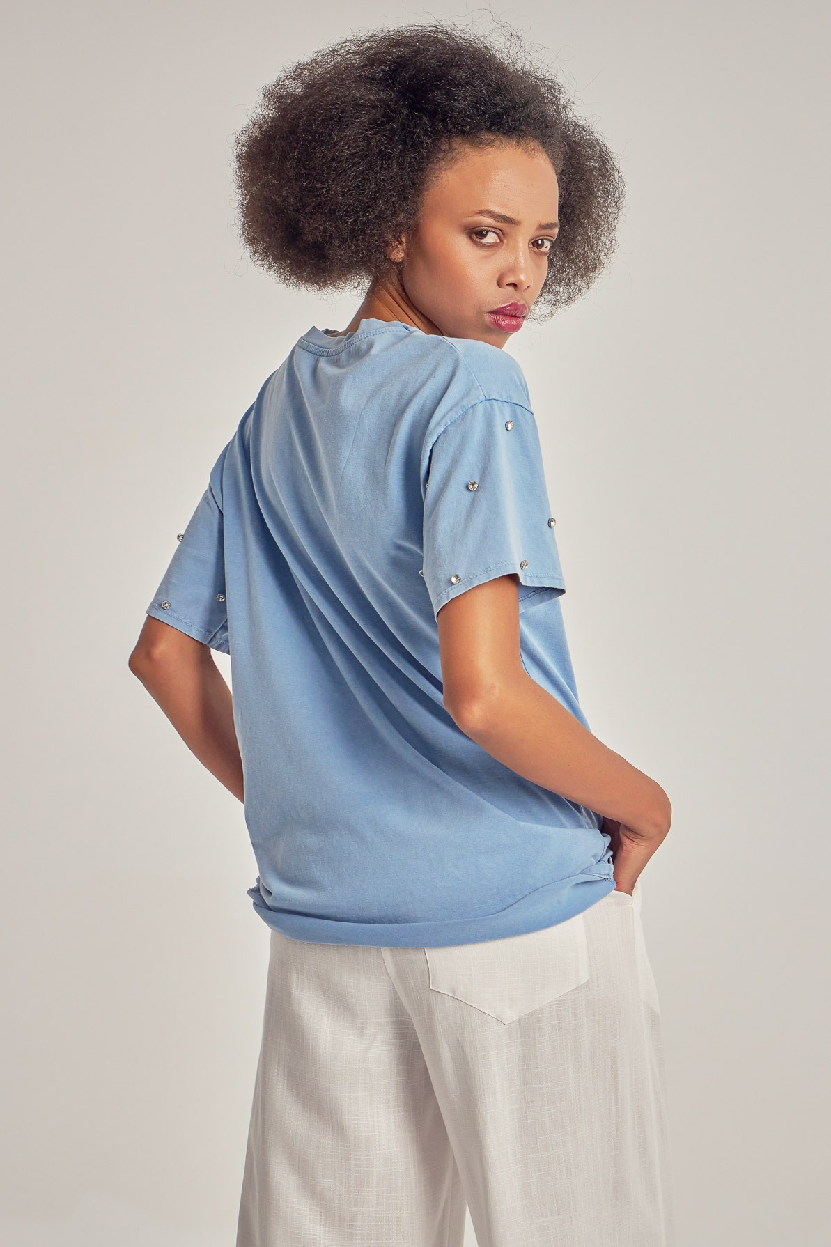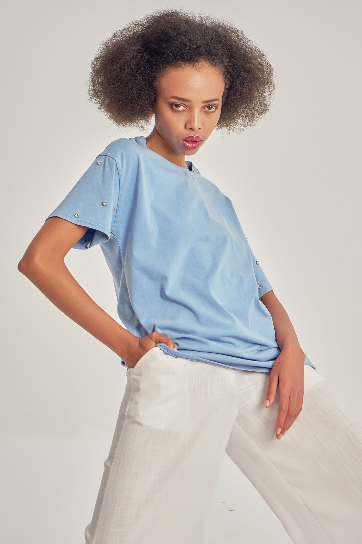 Tricou lejer din bumbac, cu aplicații pe mâneci.